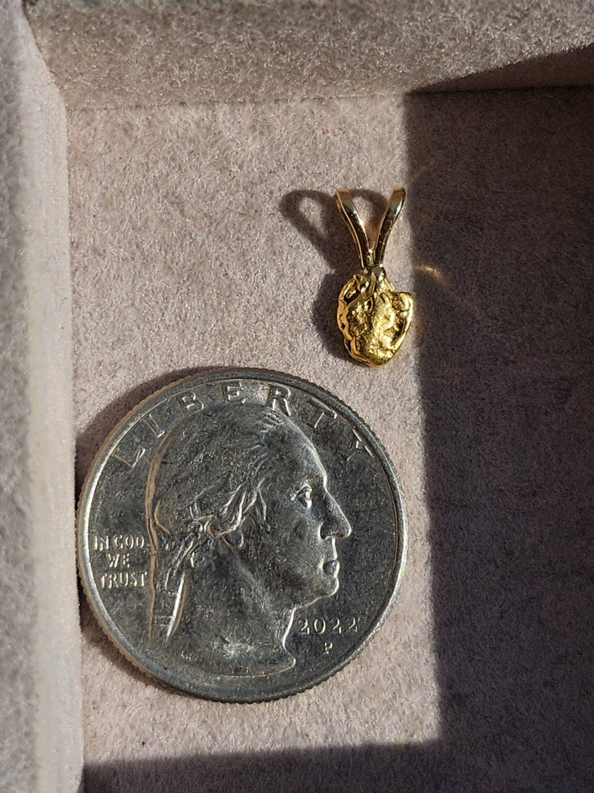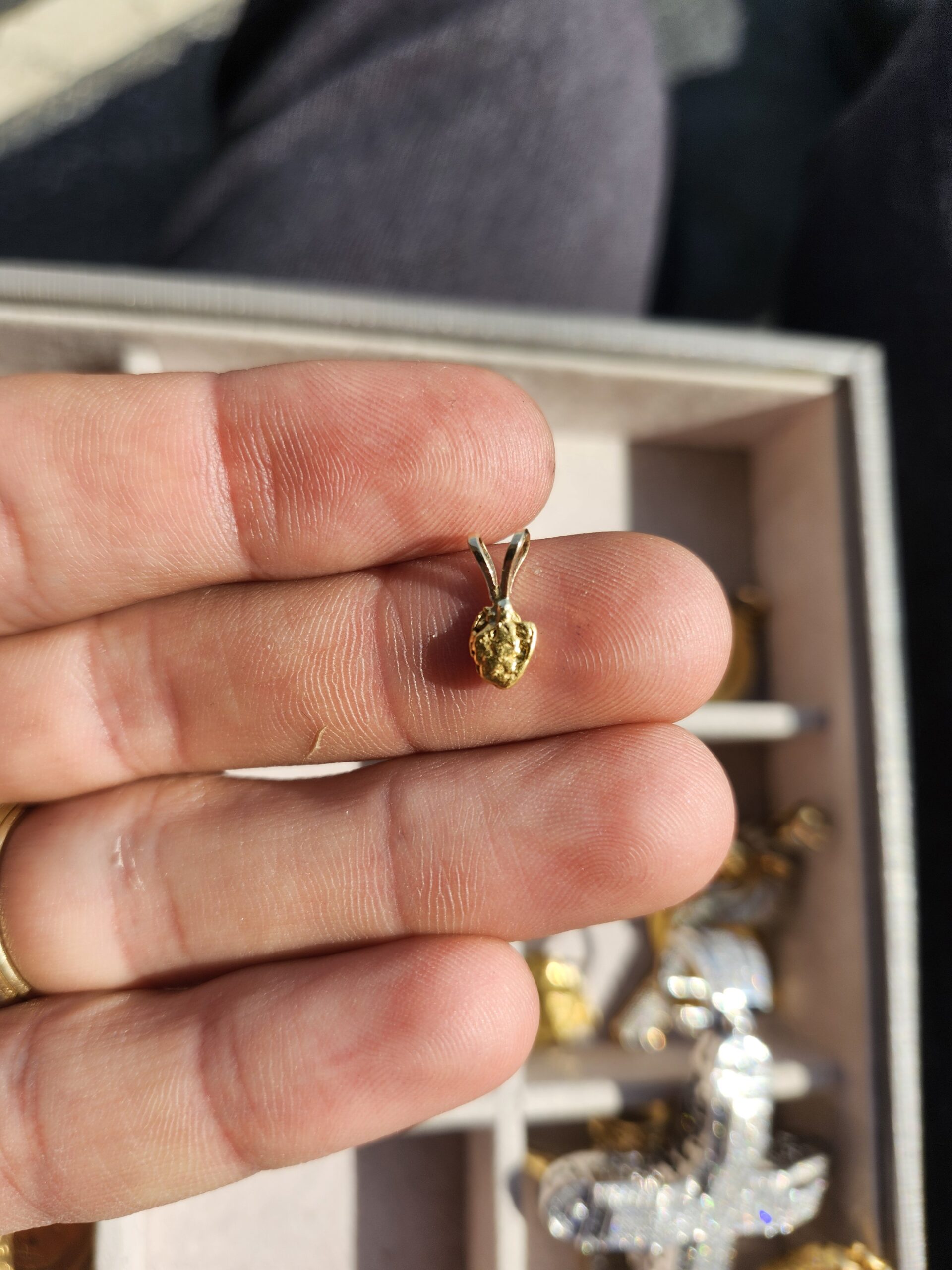 the xrf shot read about 20k gold for the Nugget, the bunny ears are made from 14k.