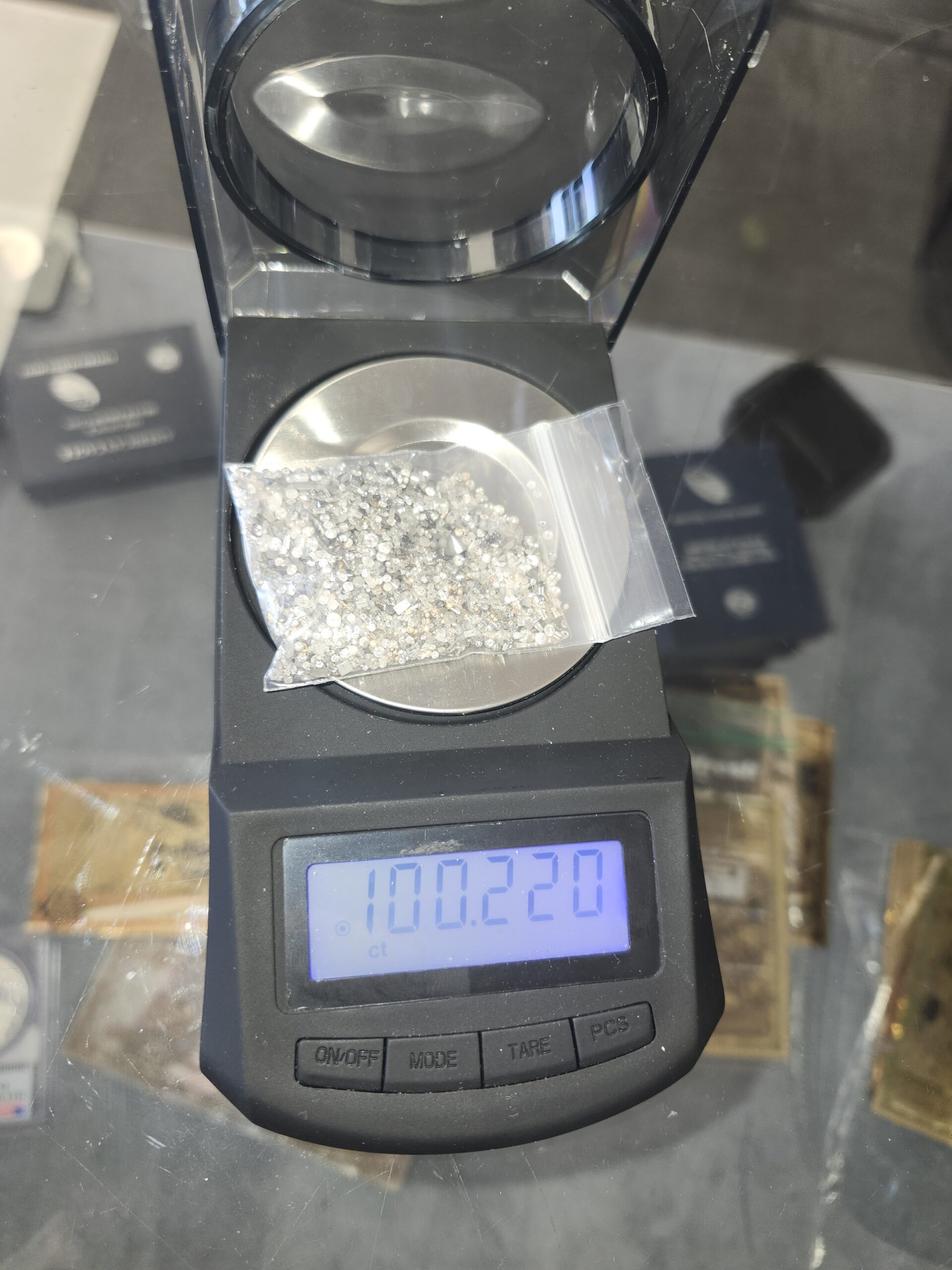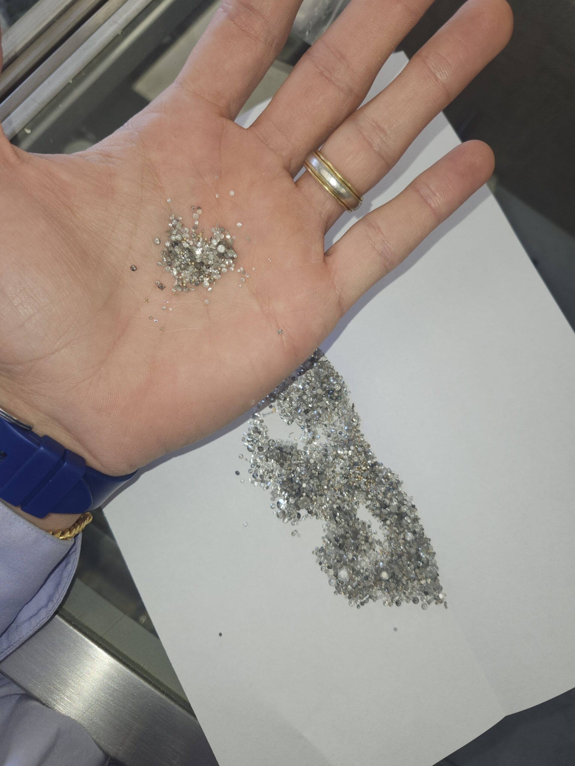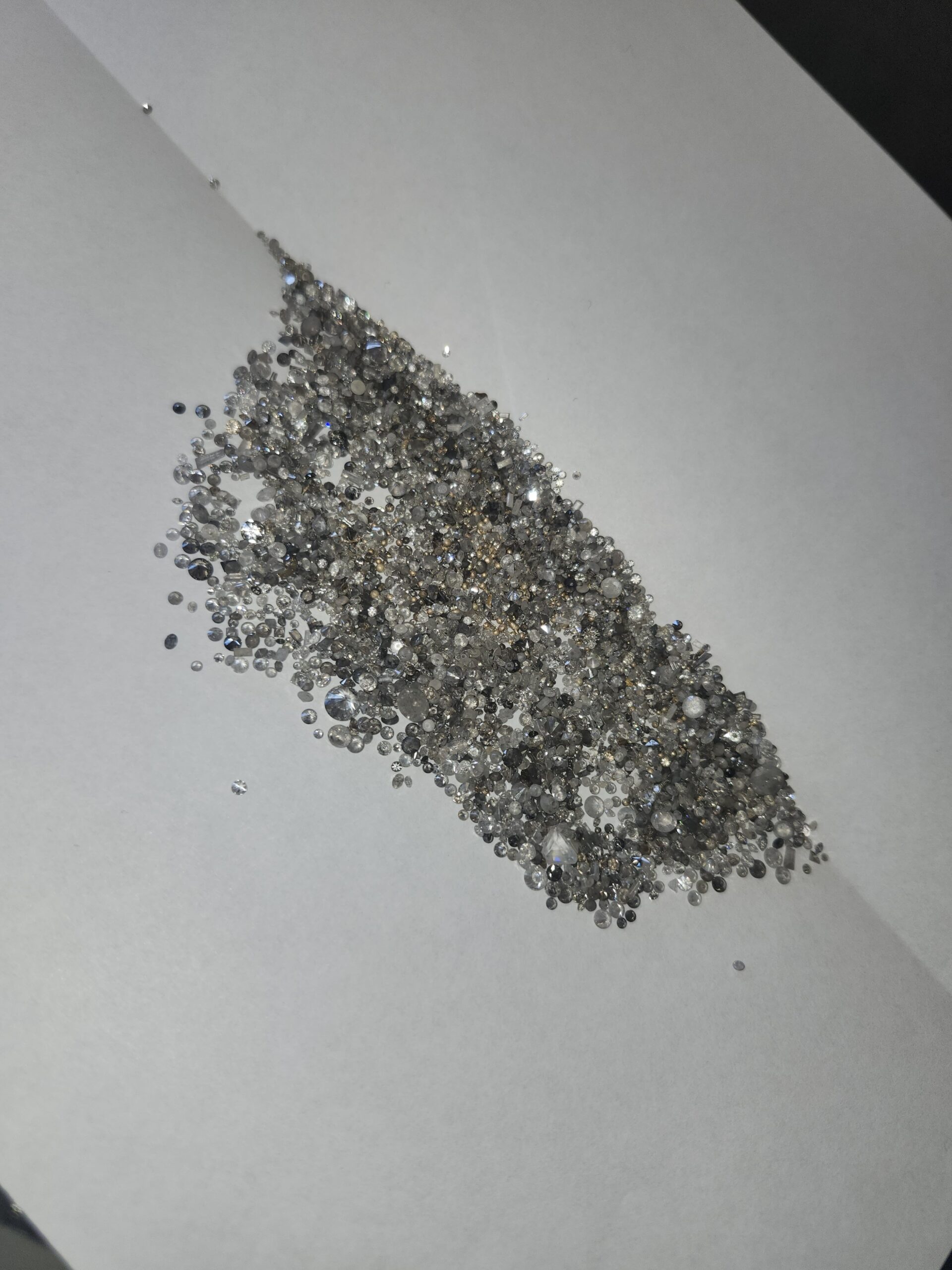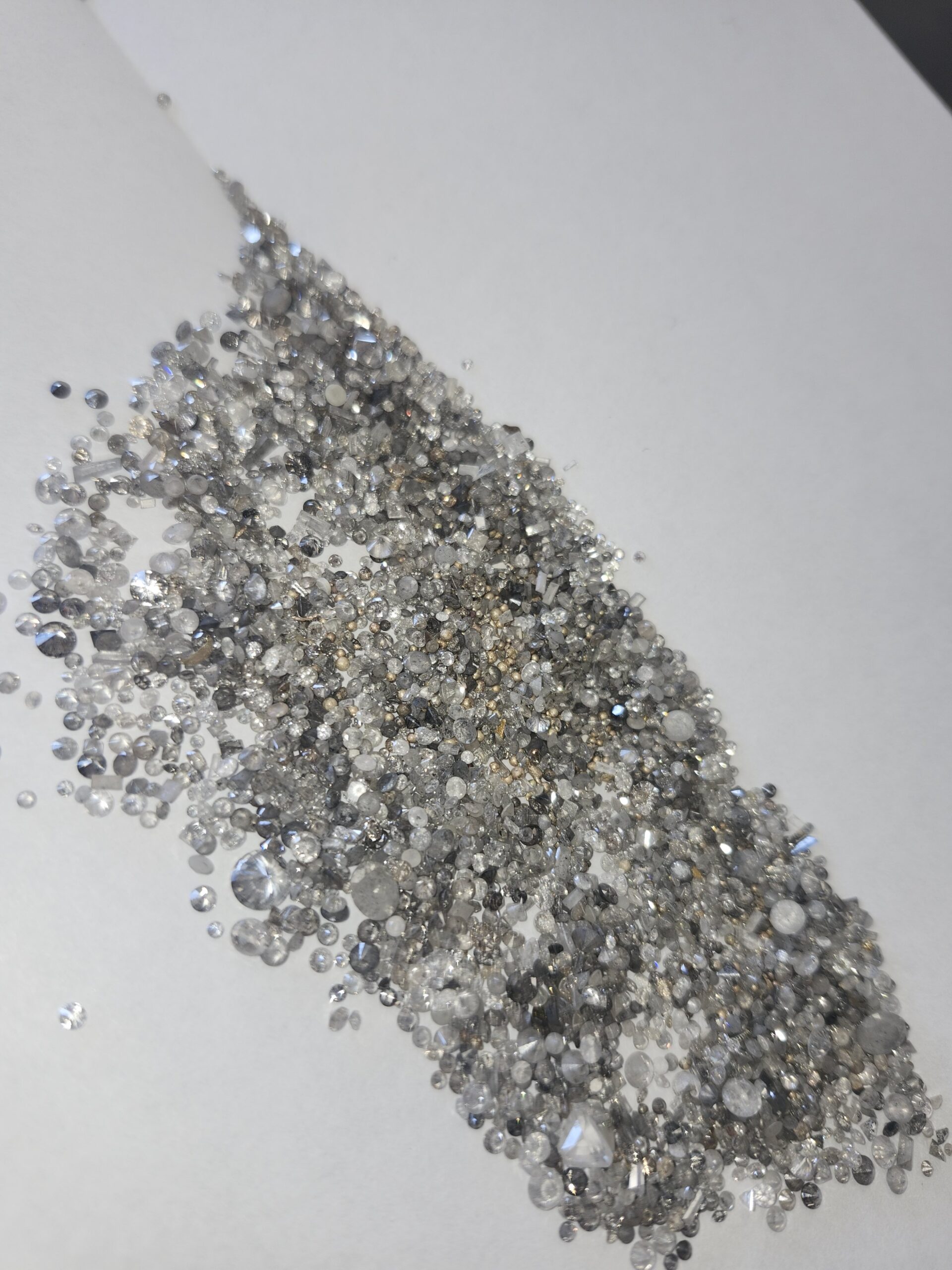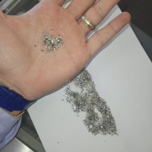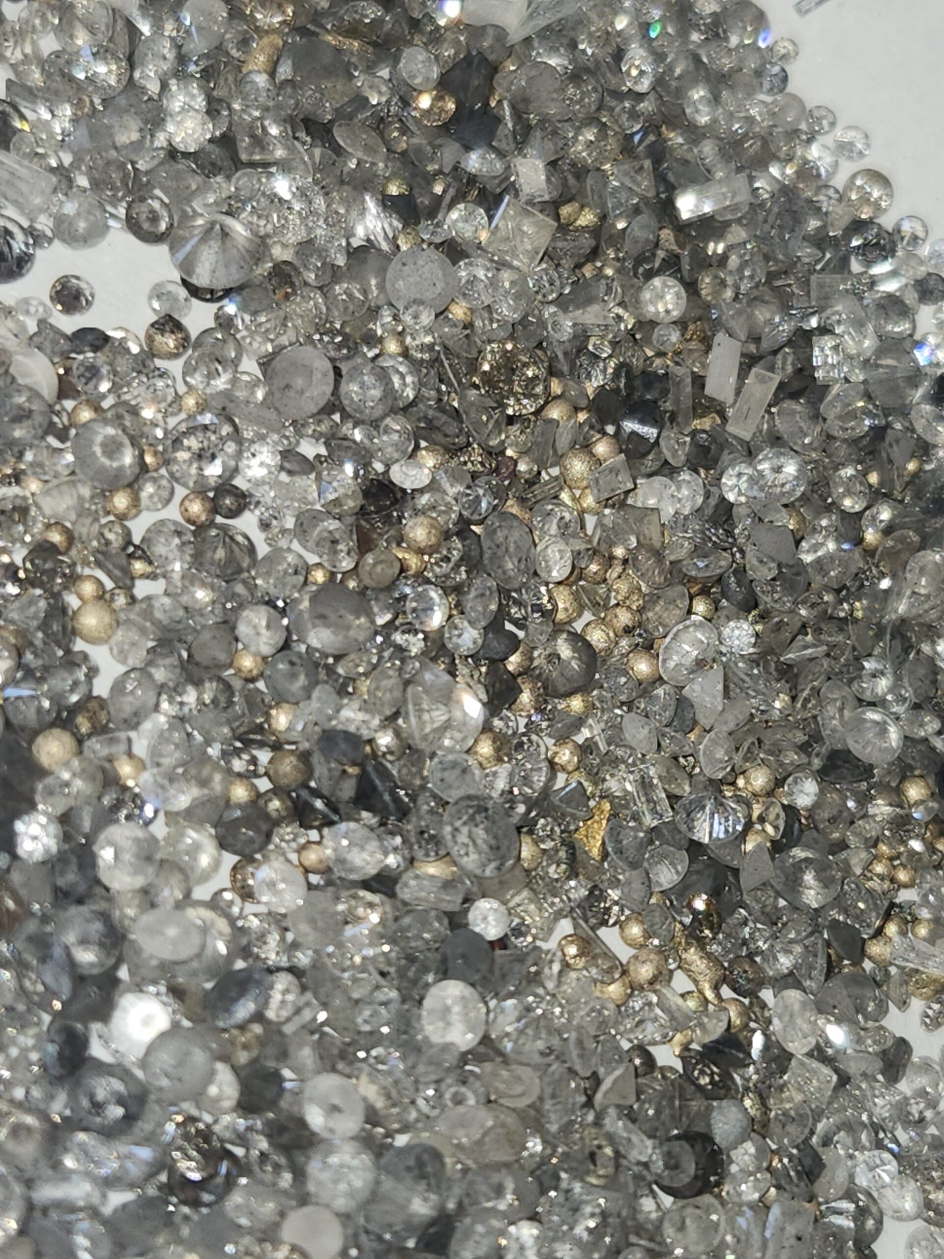 Approximately 100 total carat weight of burnt natural diamonds and specs of gold recovered from gold slag.