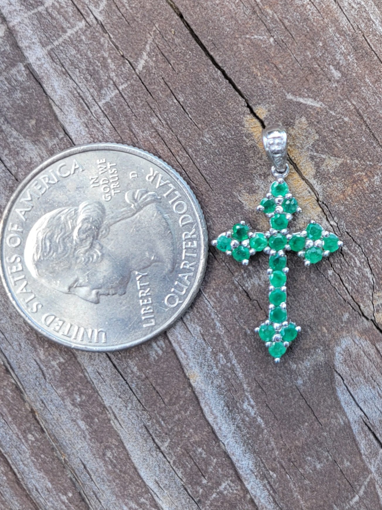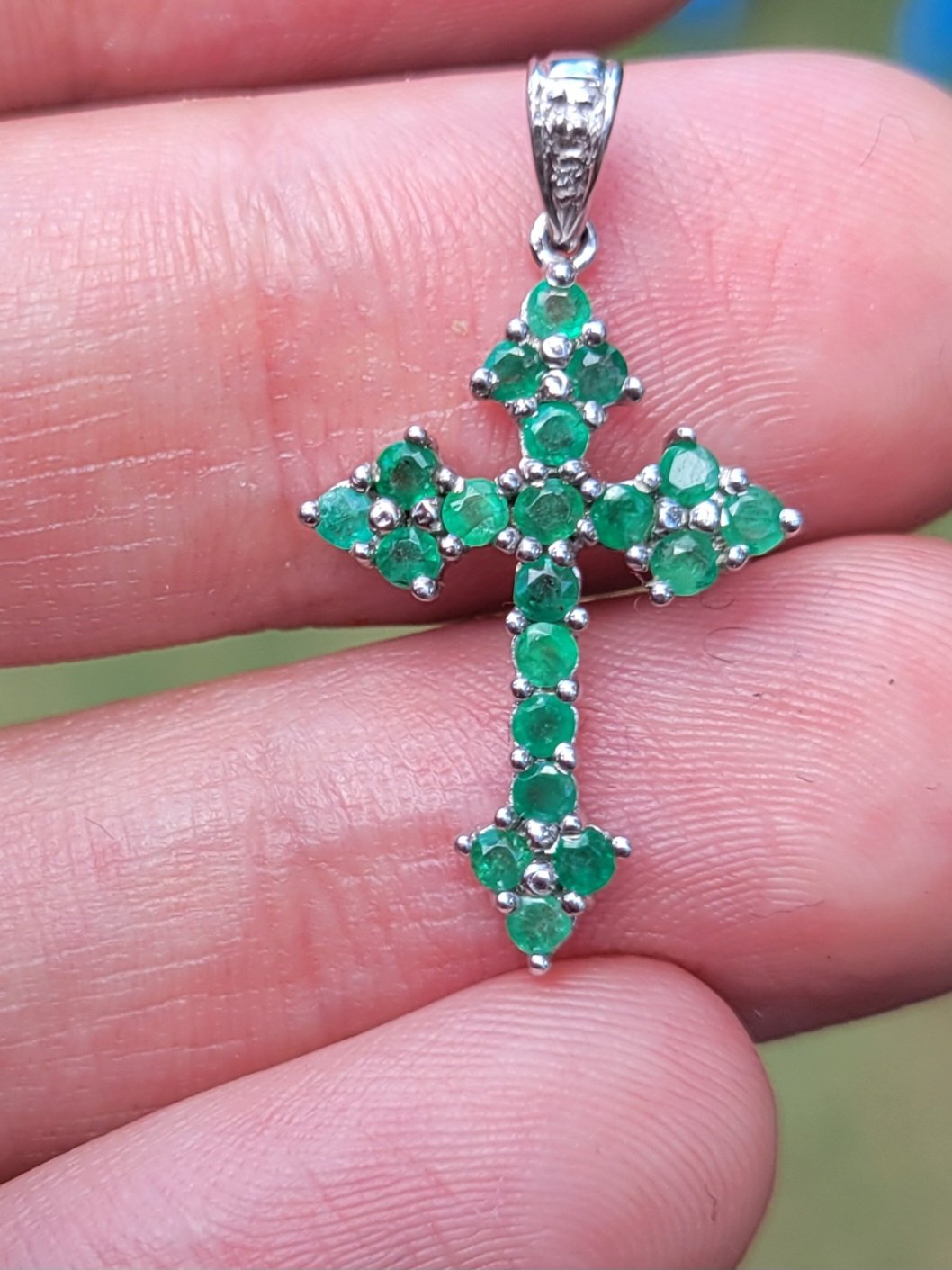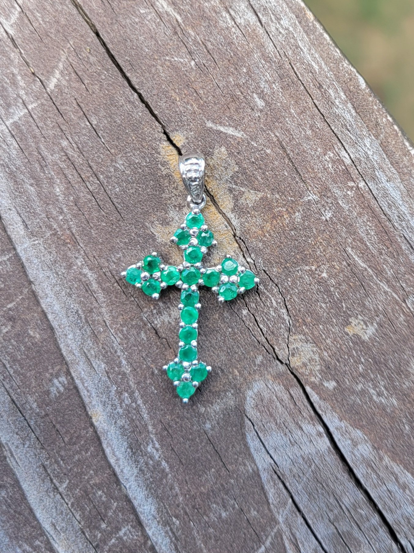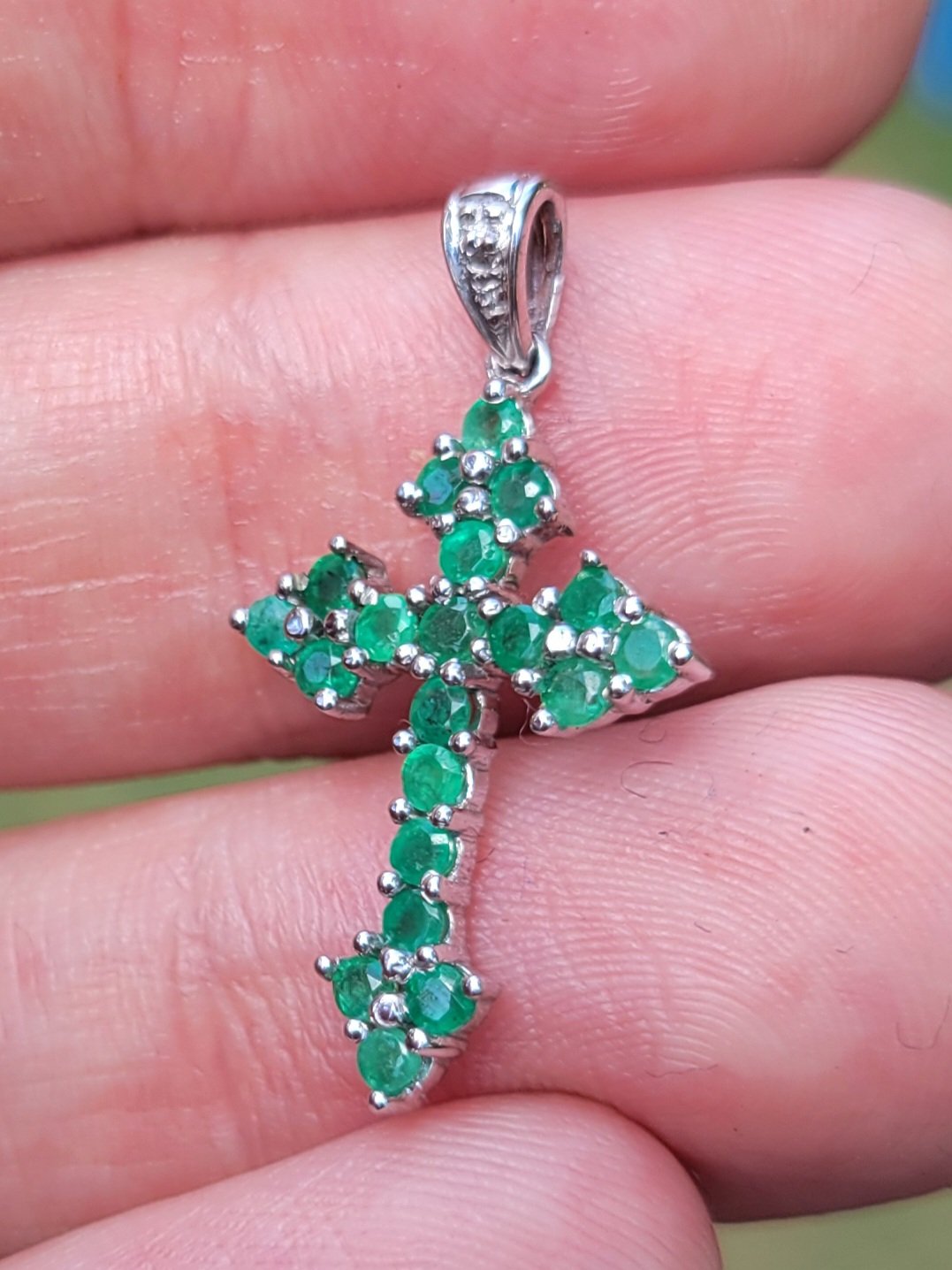 10k 1.4g white gold and emerald cross