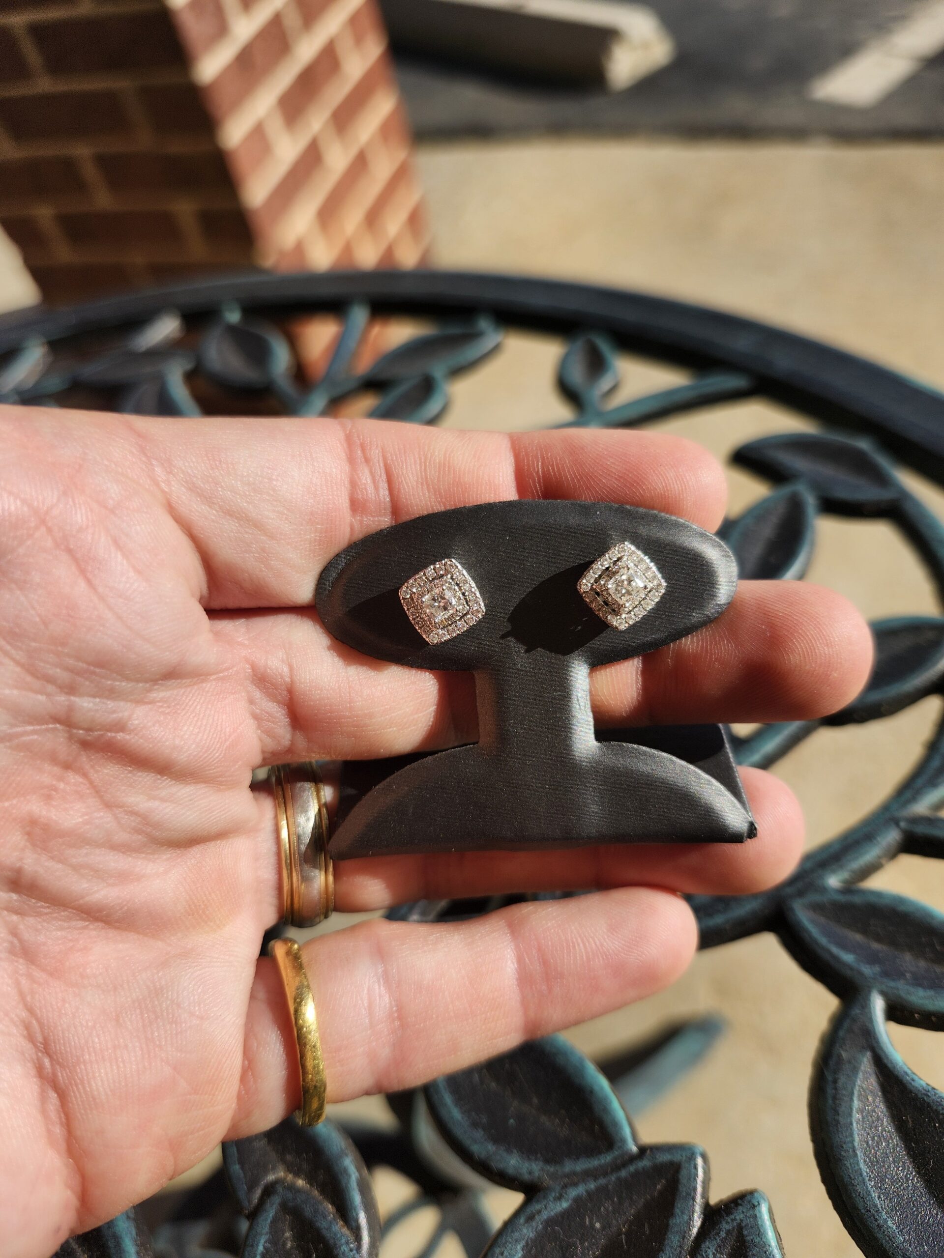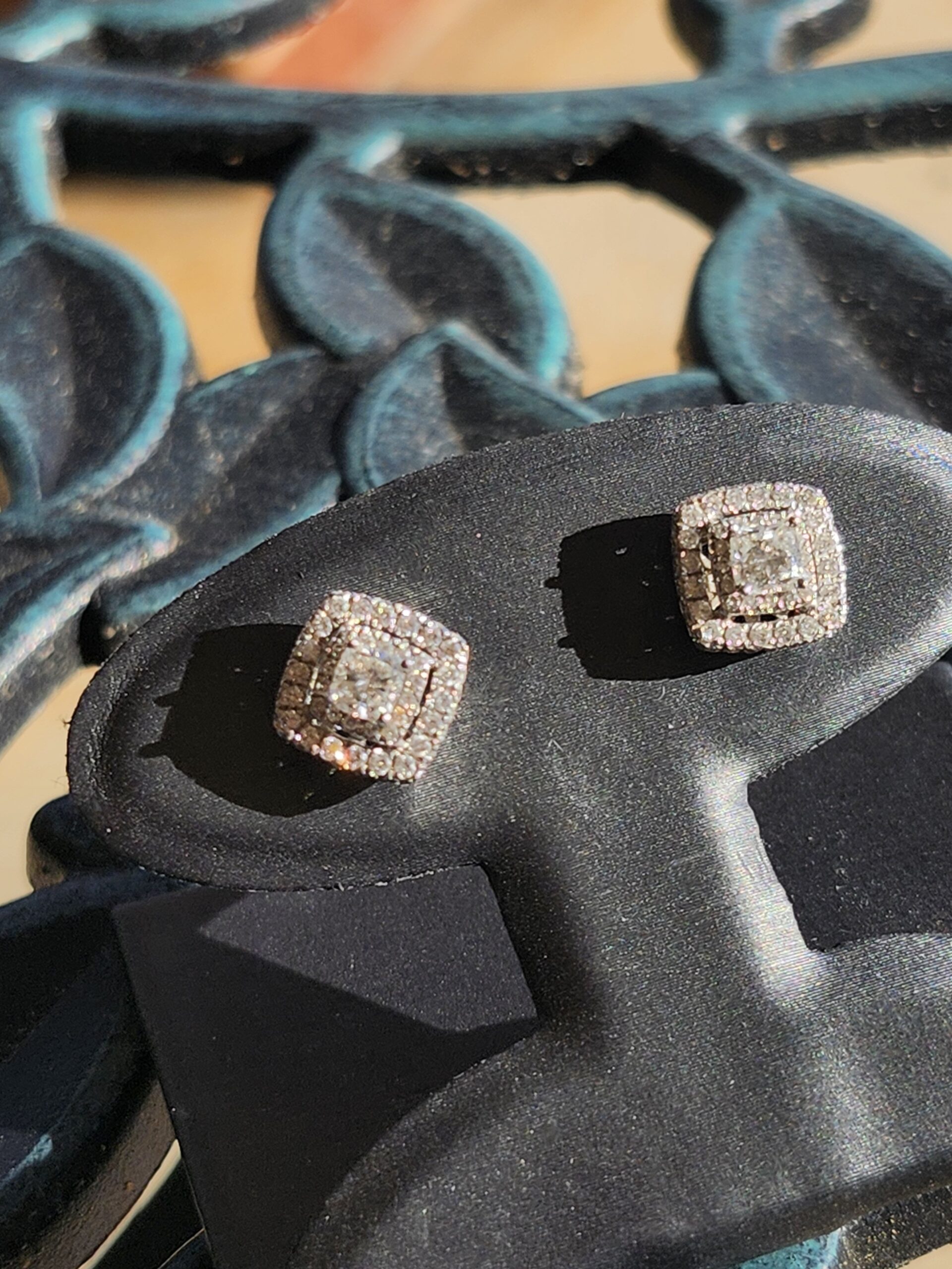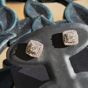 10k 3.5g Cushion & Tripple Diamond Halo – 1tcw Studs