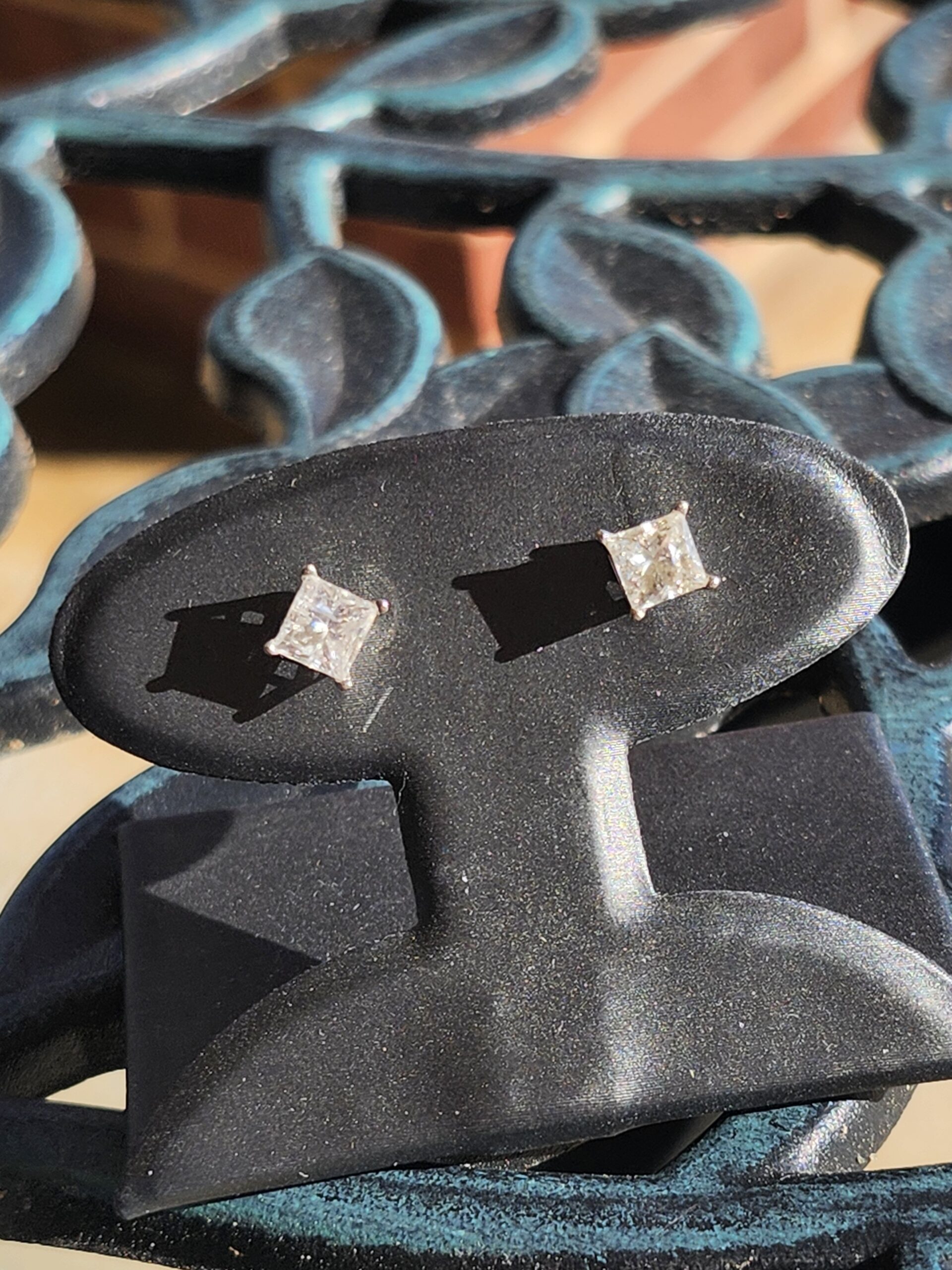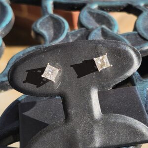 these white gold Studs have natural i clarity and 5mm accross making them approximately 1.5 carats total weight. they look huge and not heavy to wear.