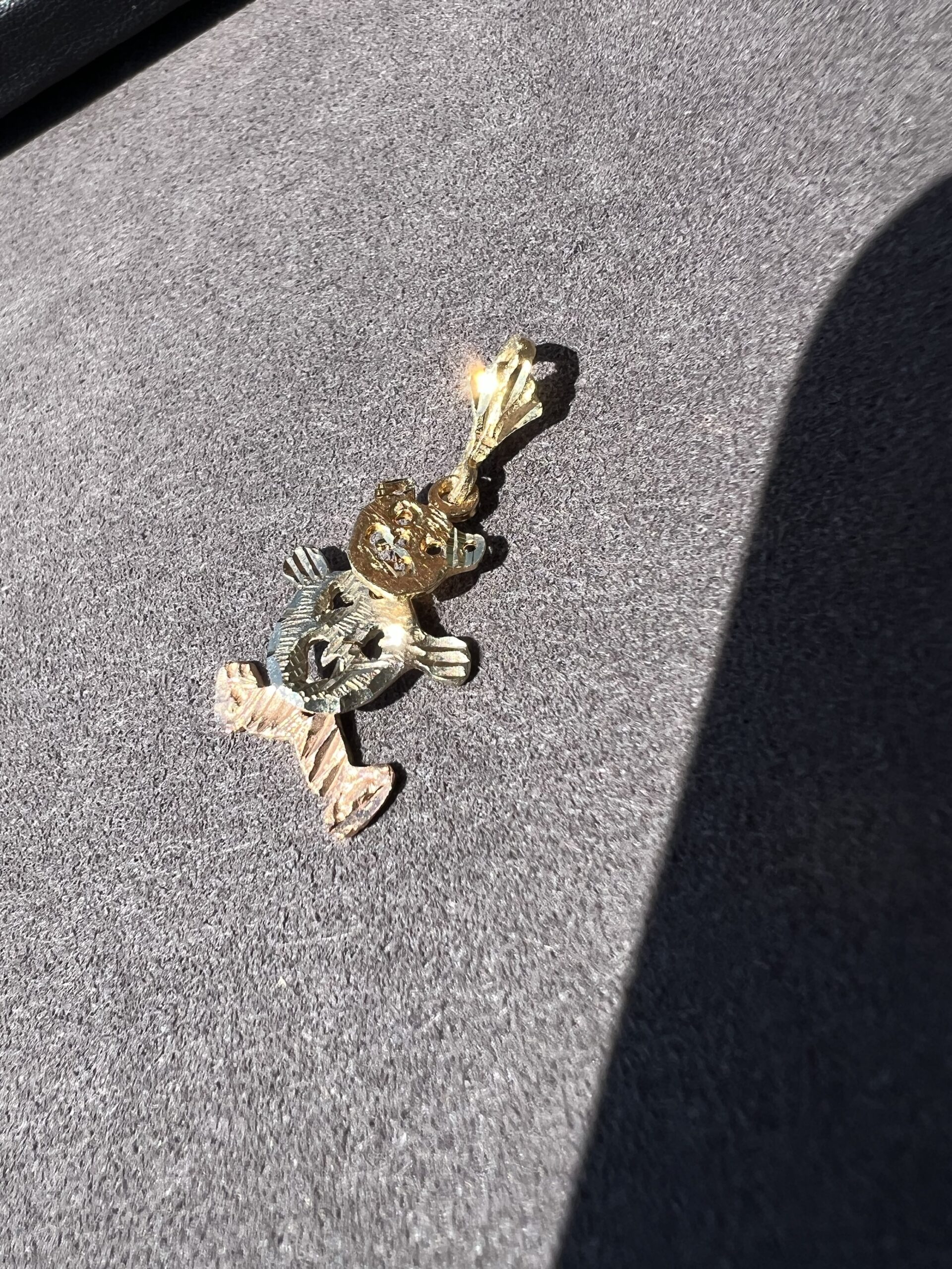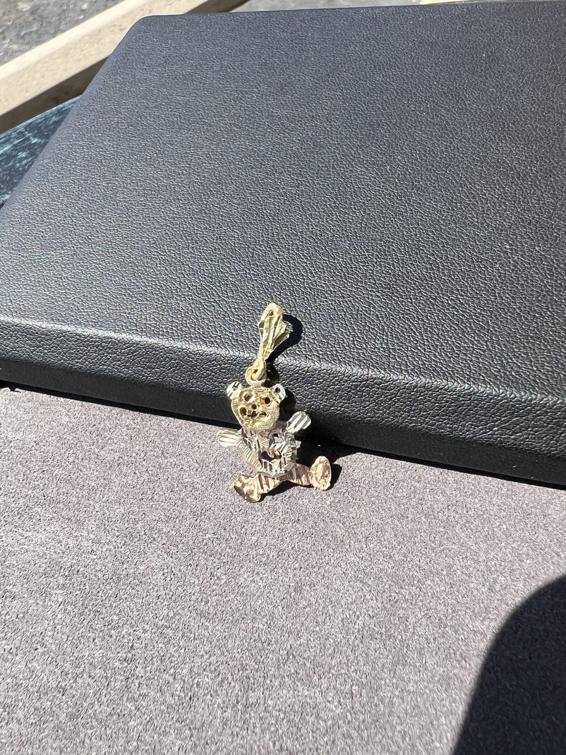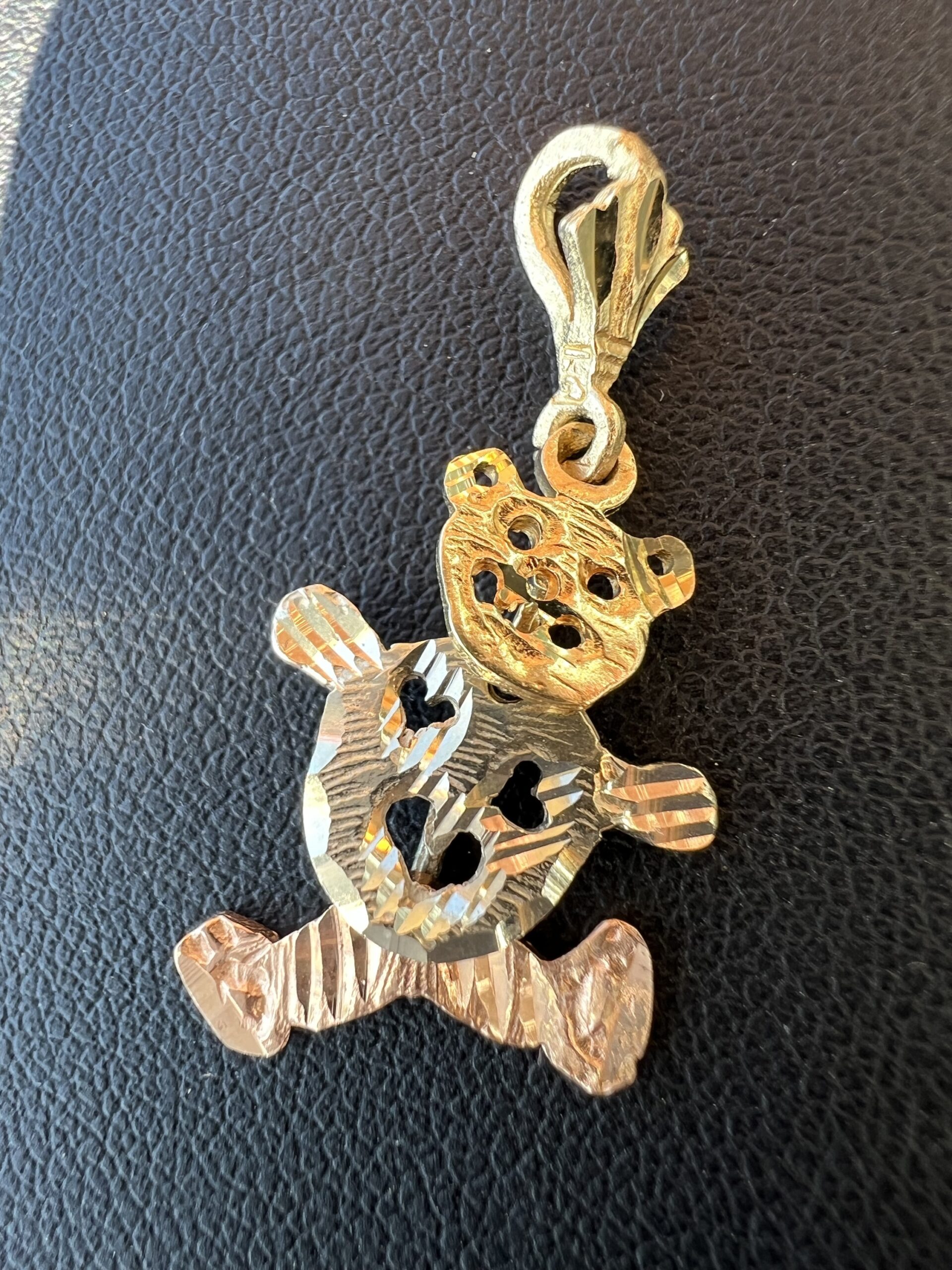 Bear charm is yellow gold, white gold, and rose gold. Rare piece, finely crafted. Bail is 2.8mm by 4.1mm.