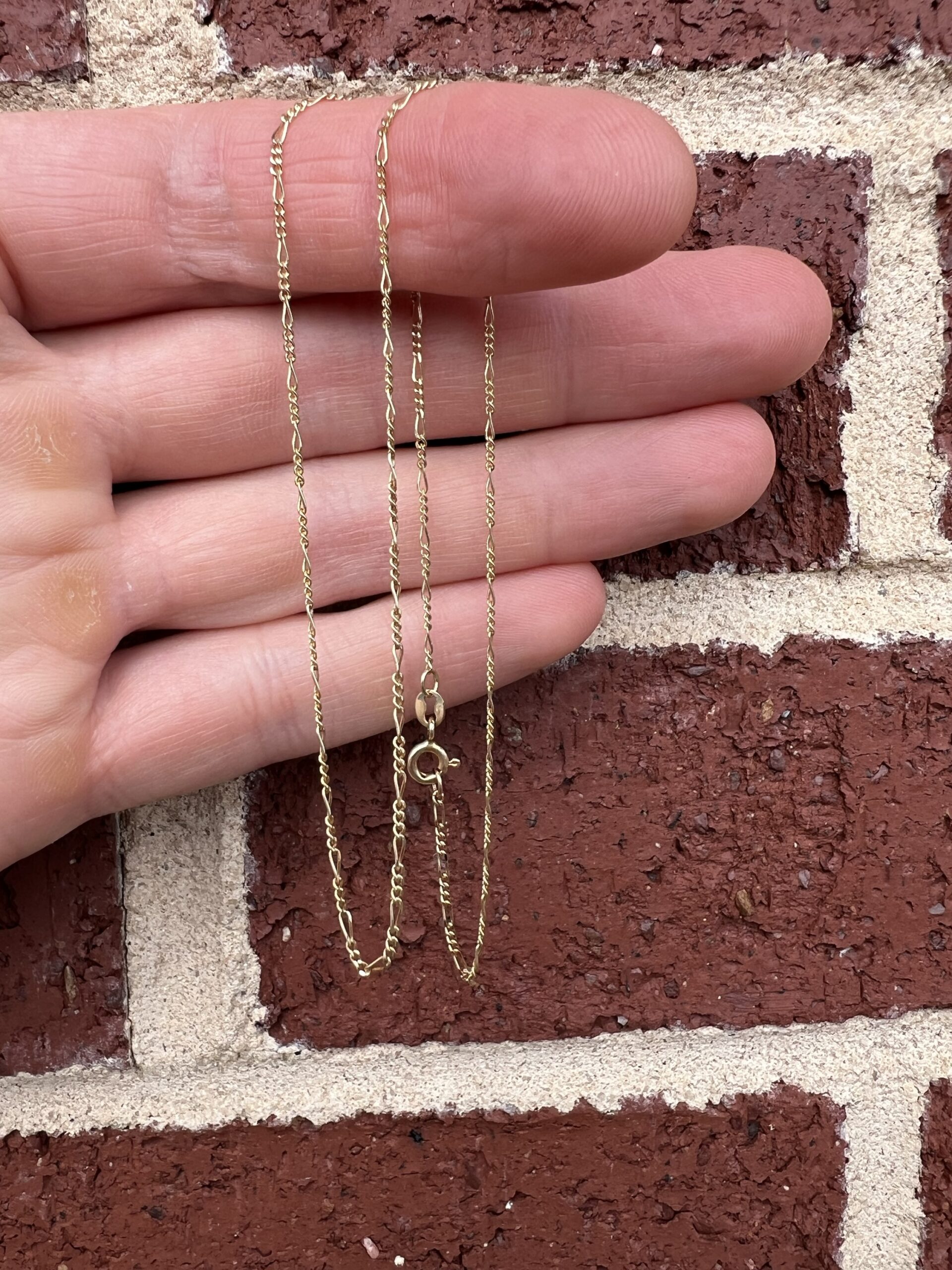 Dainty Figaro gold chain, delicate shine, timeless. 1.3mm
