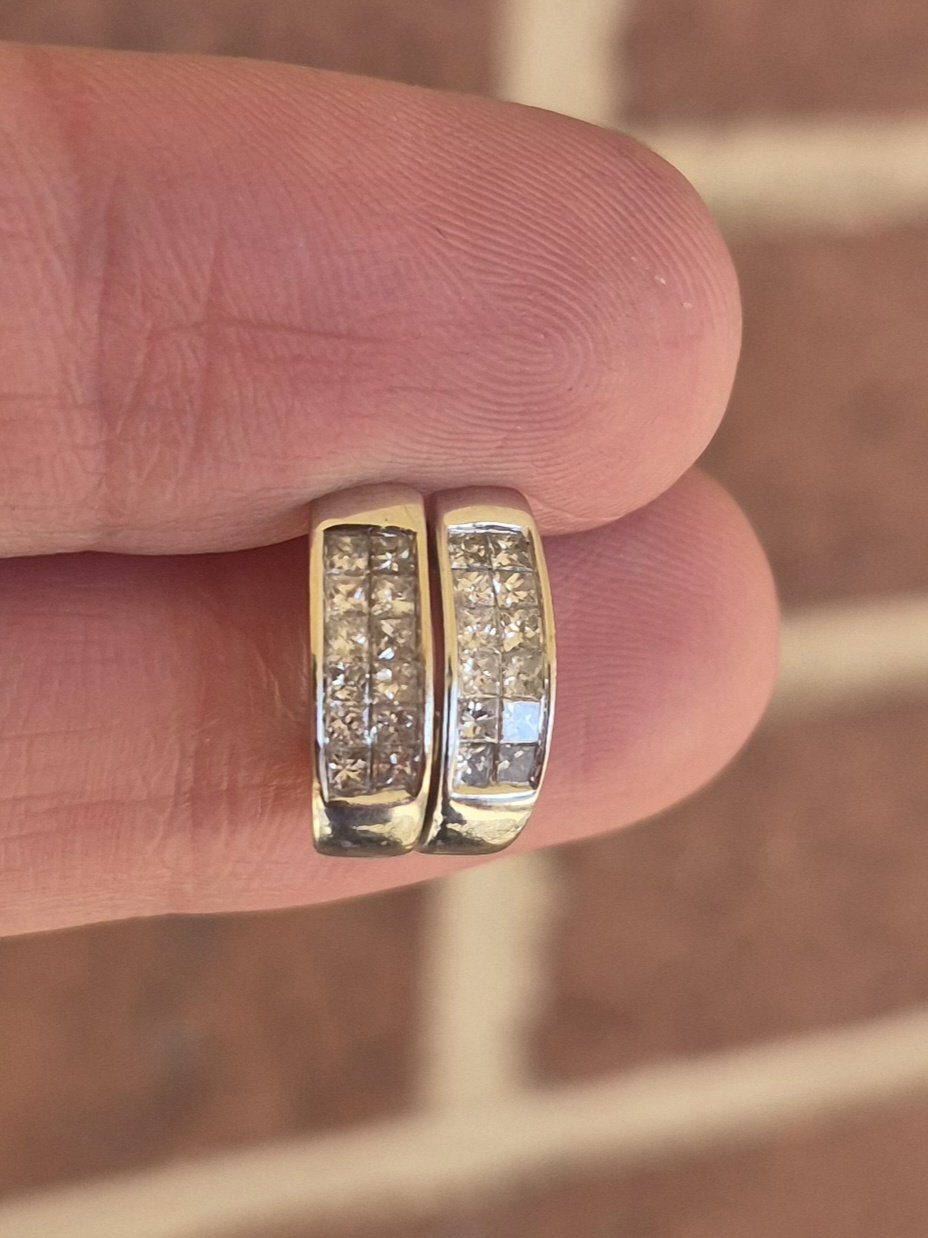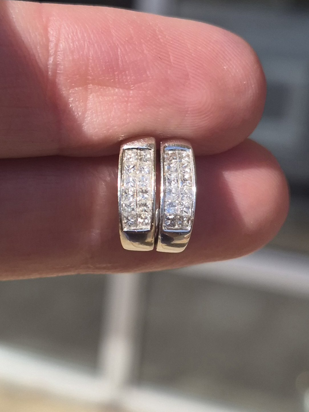 White gold half hoops with square diamonds