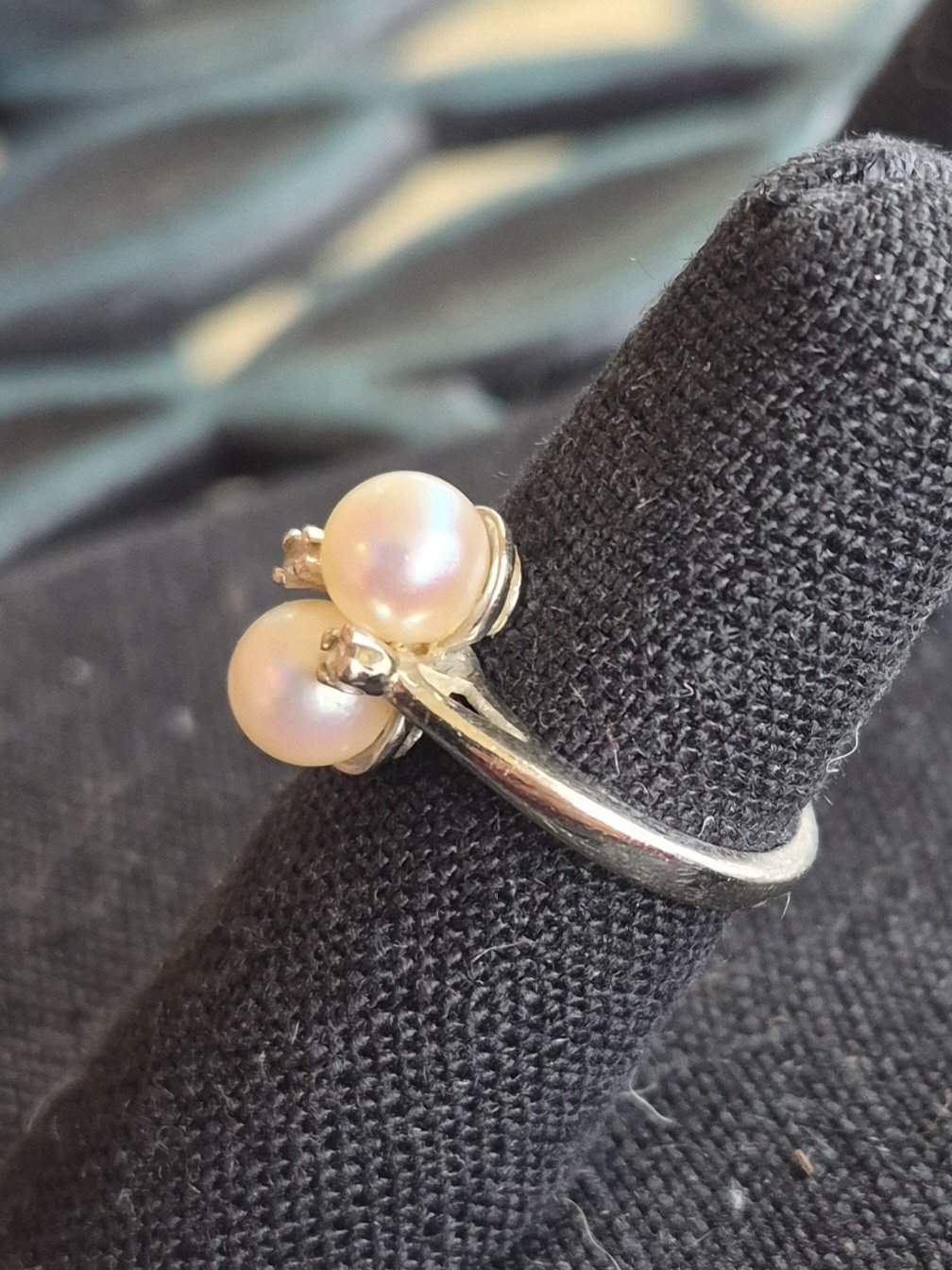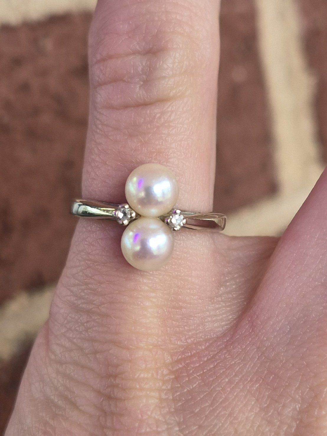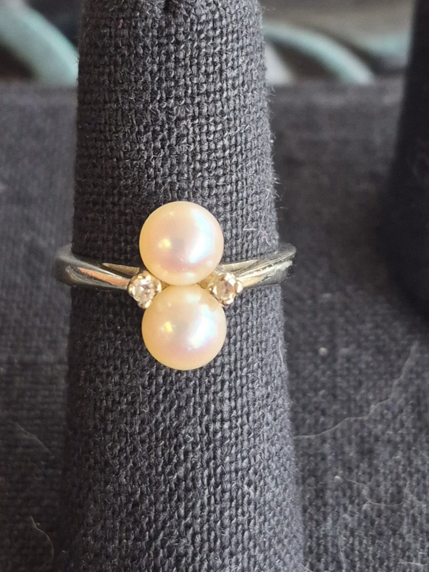 14k 3.3g white gold pearl and diamond ring- sz5 quantity