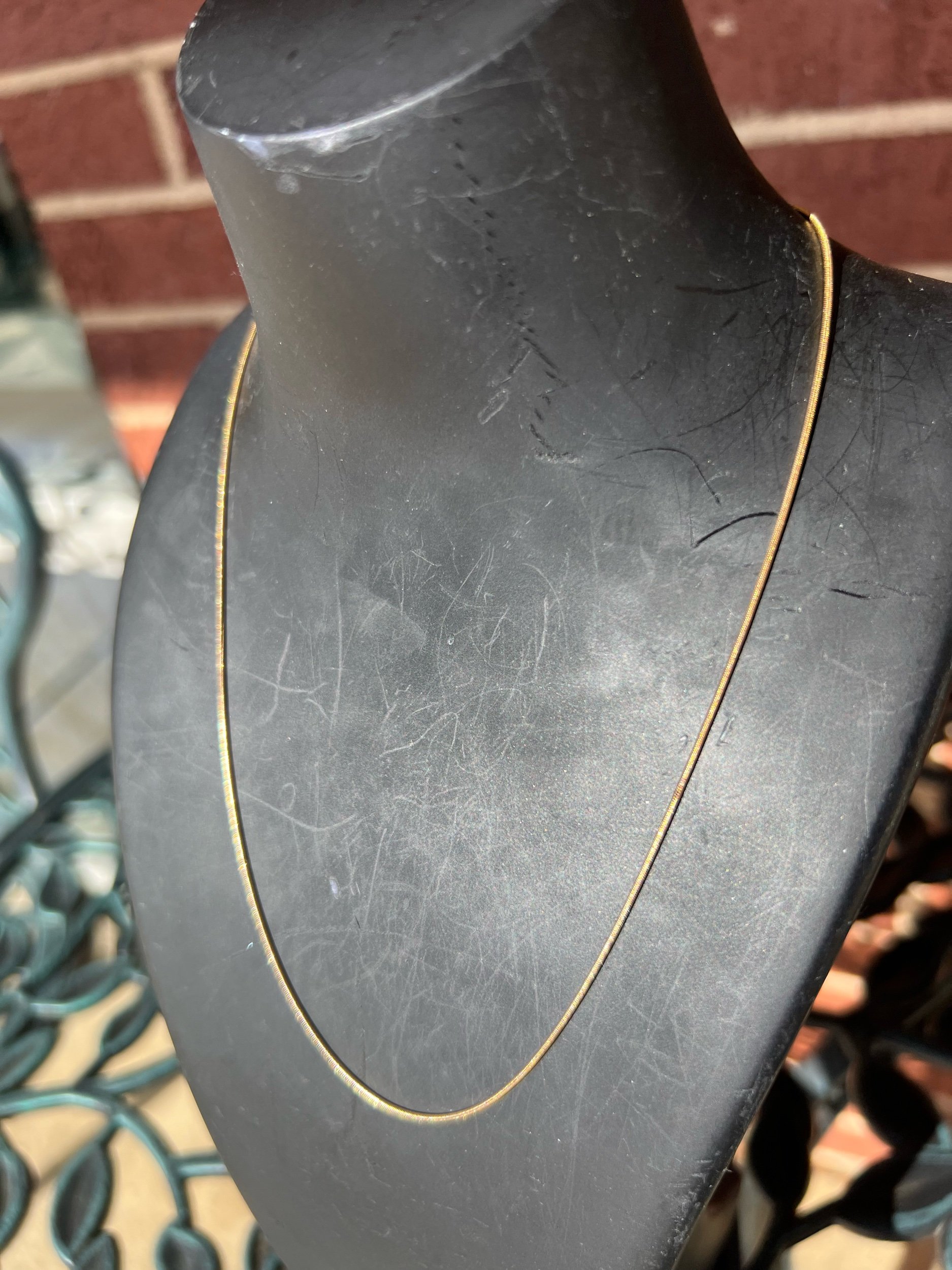 Delicate 16-inch 14k gold snake chain, shimmer included. 1mm