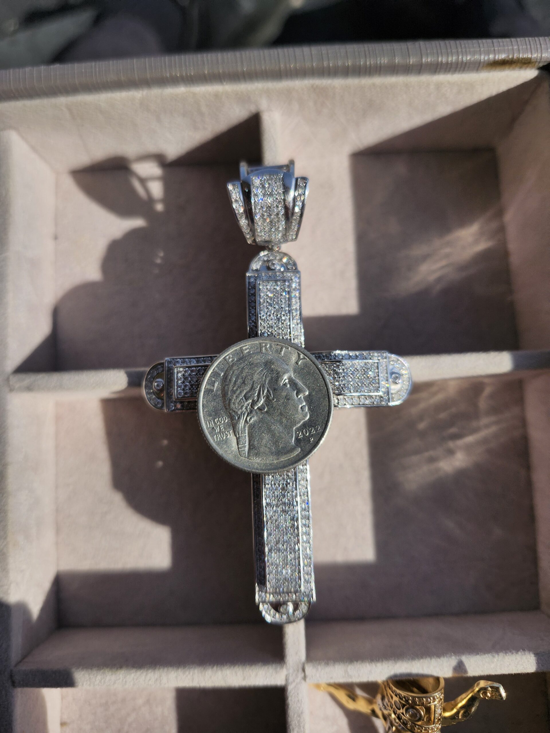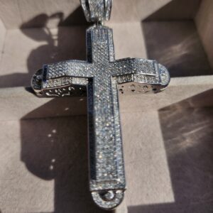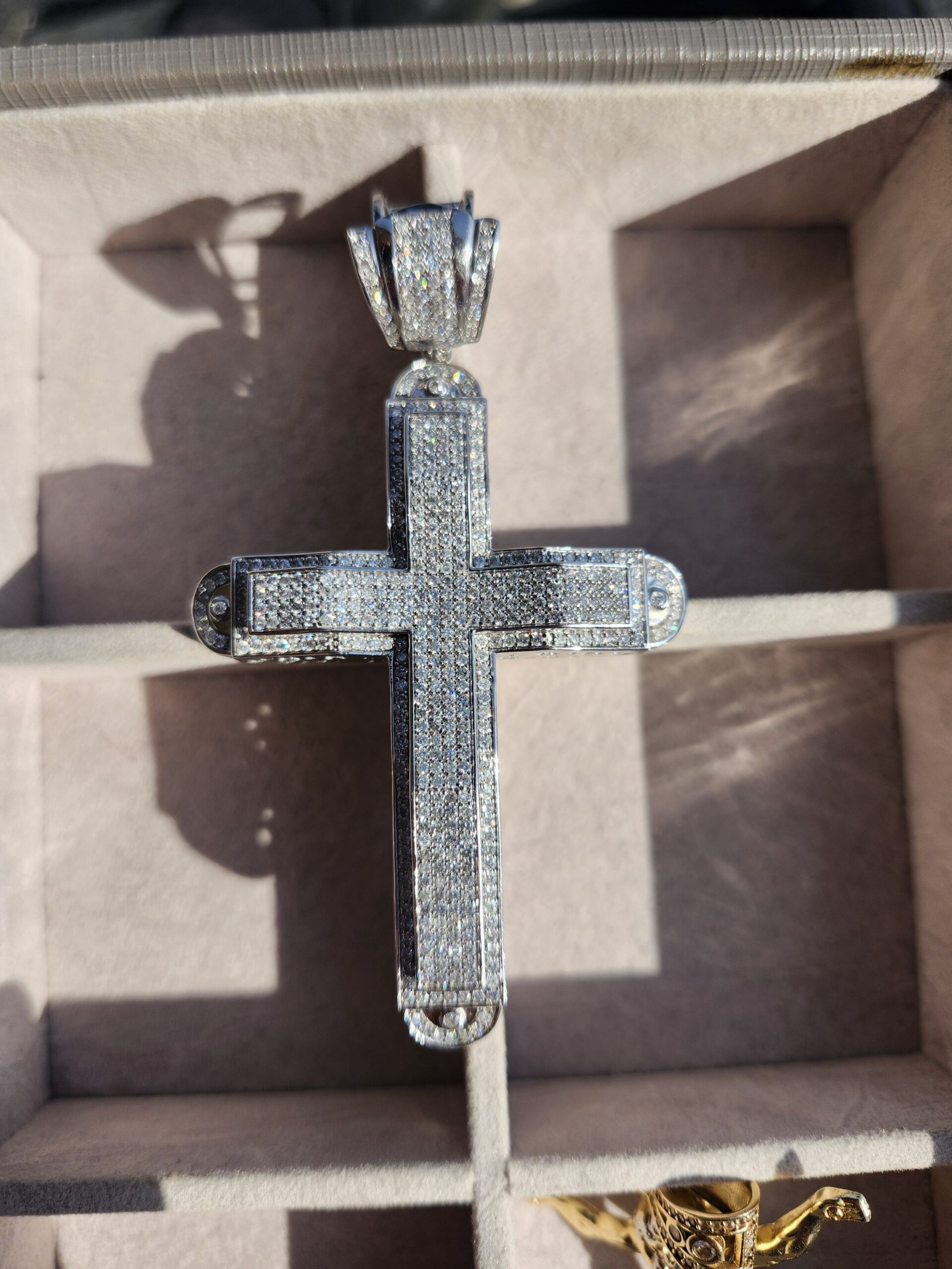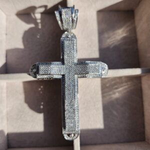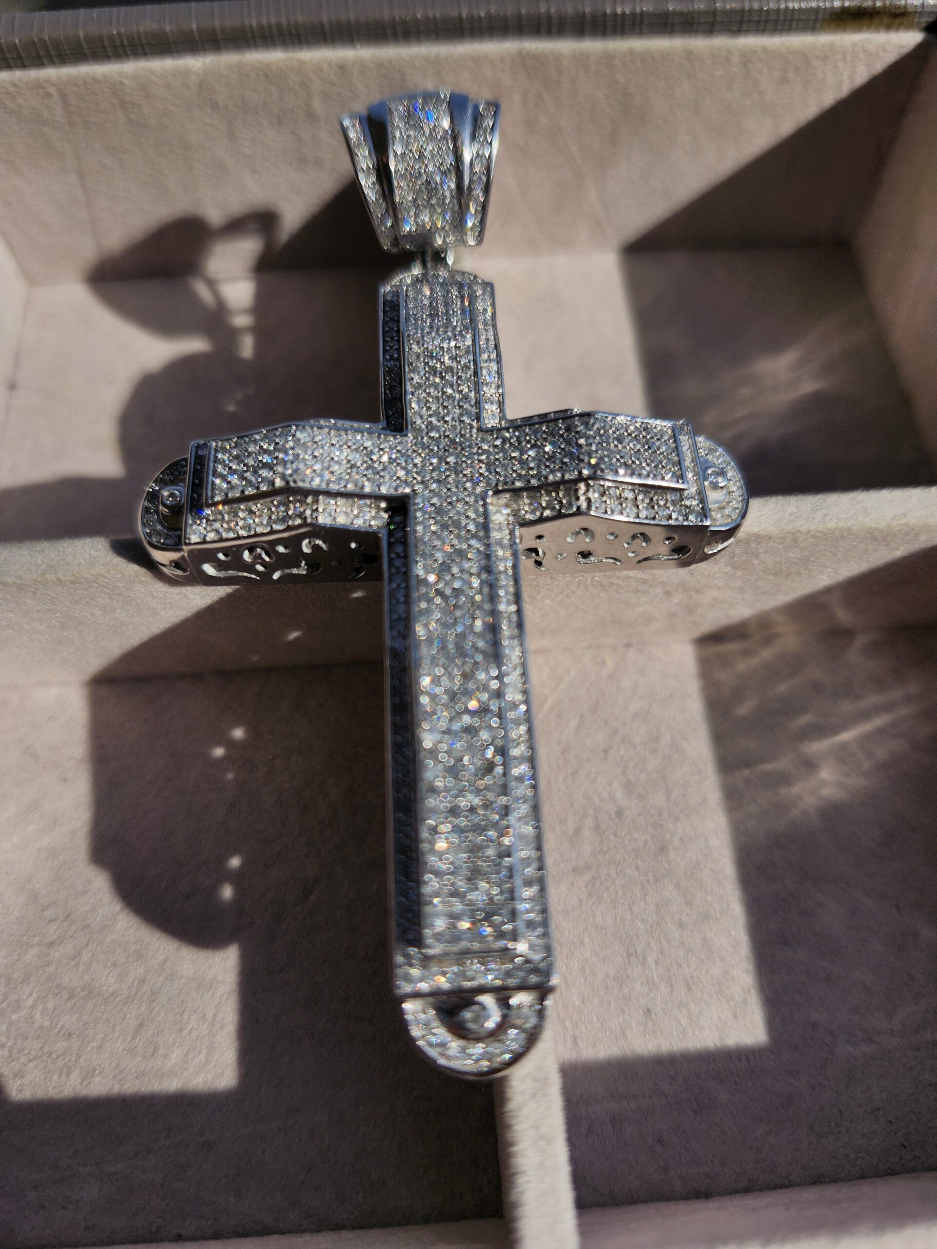 “4.81” is stamped in the back and I believe that is the total carat weight of diamonds in this cross