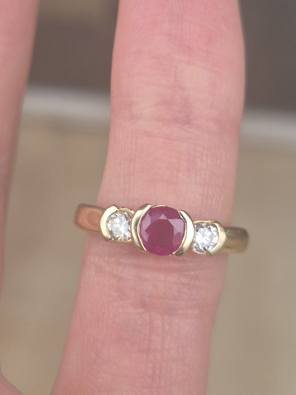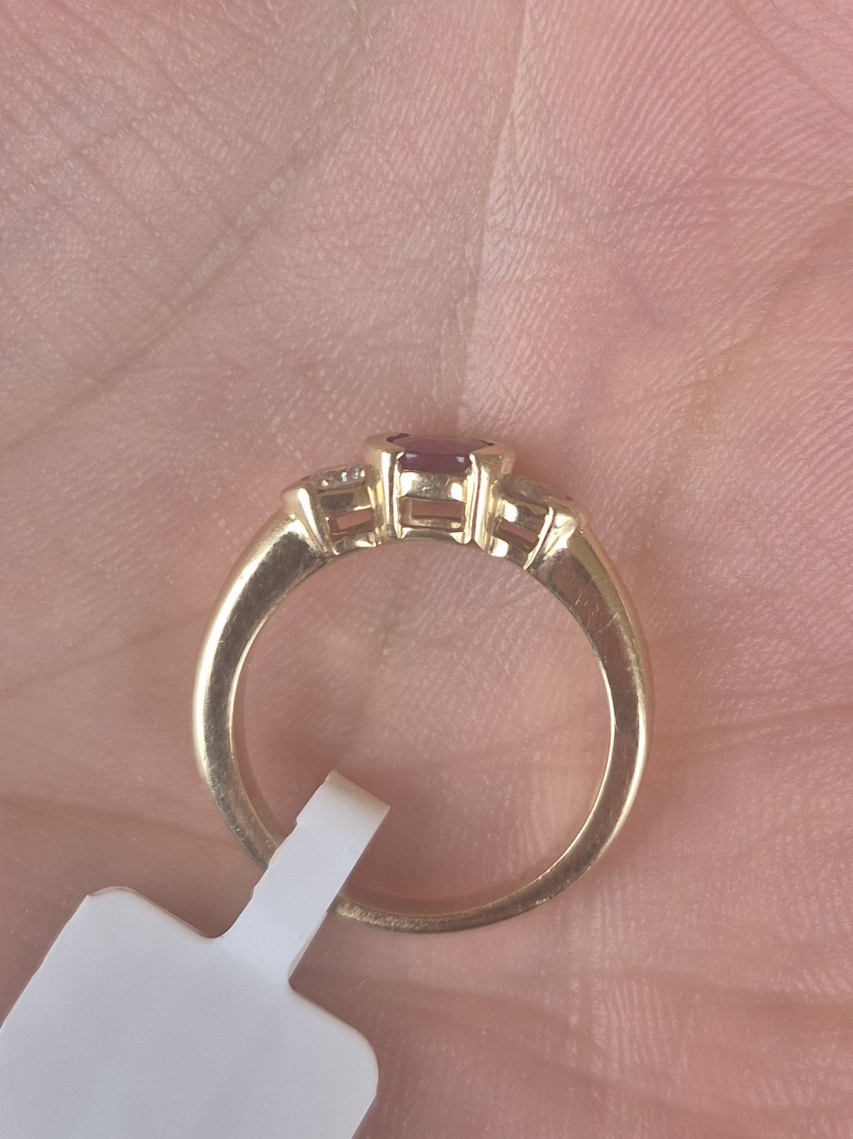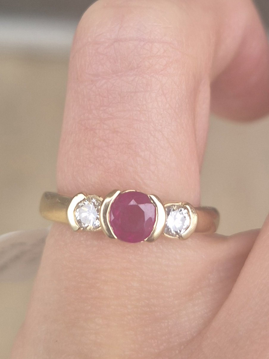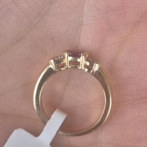 14k 4.1g ruby and diamond half bezel ring- sz5.25