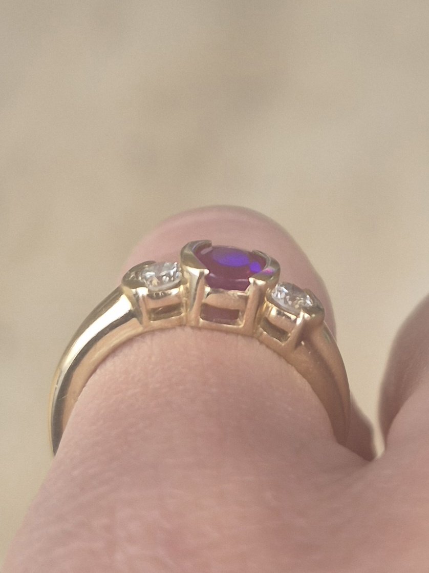 14k 4.1g ruby and diamond half bezel ring- sz5.25 quantity
