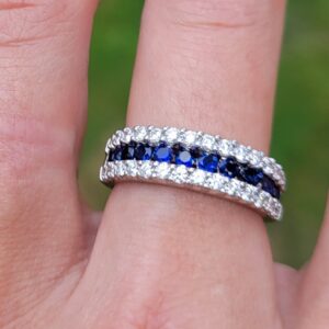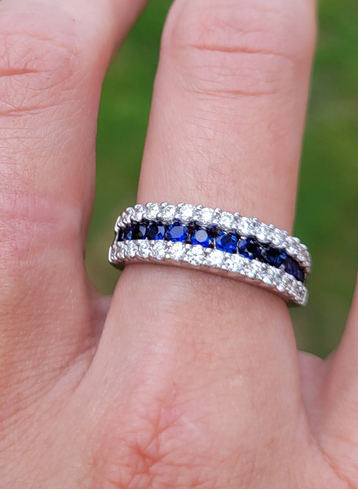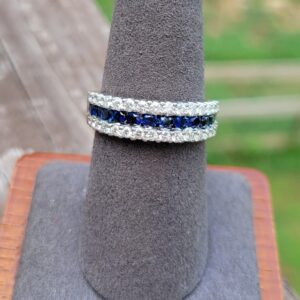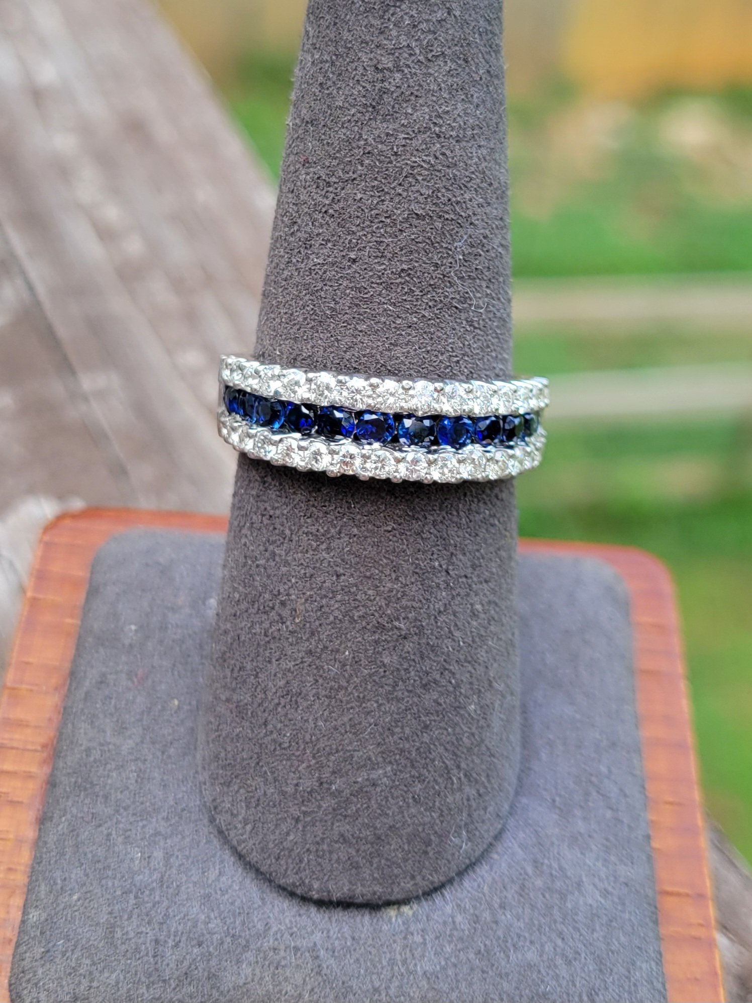 14k 5.5g white gold band with diamonds and sapphires- sz7.5 quantity