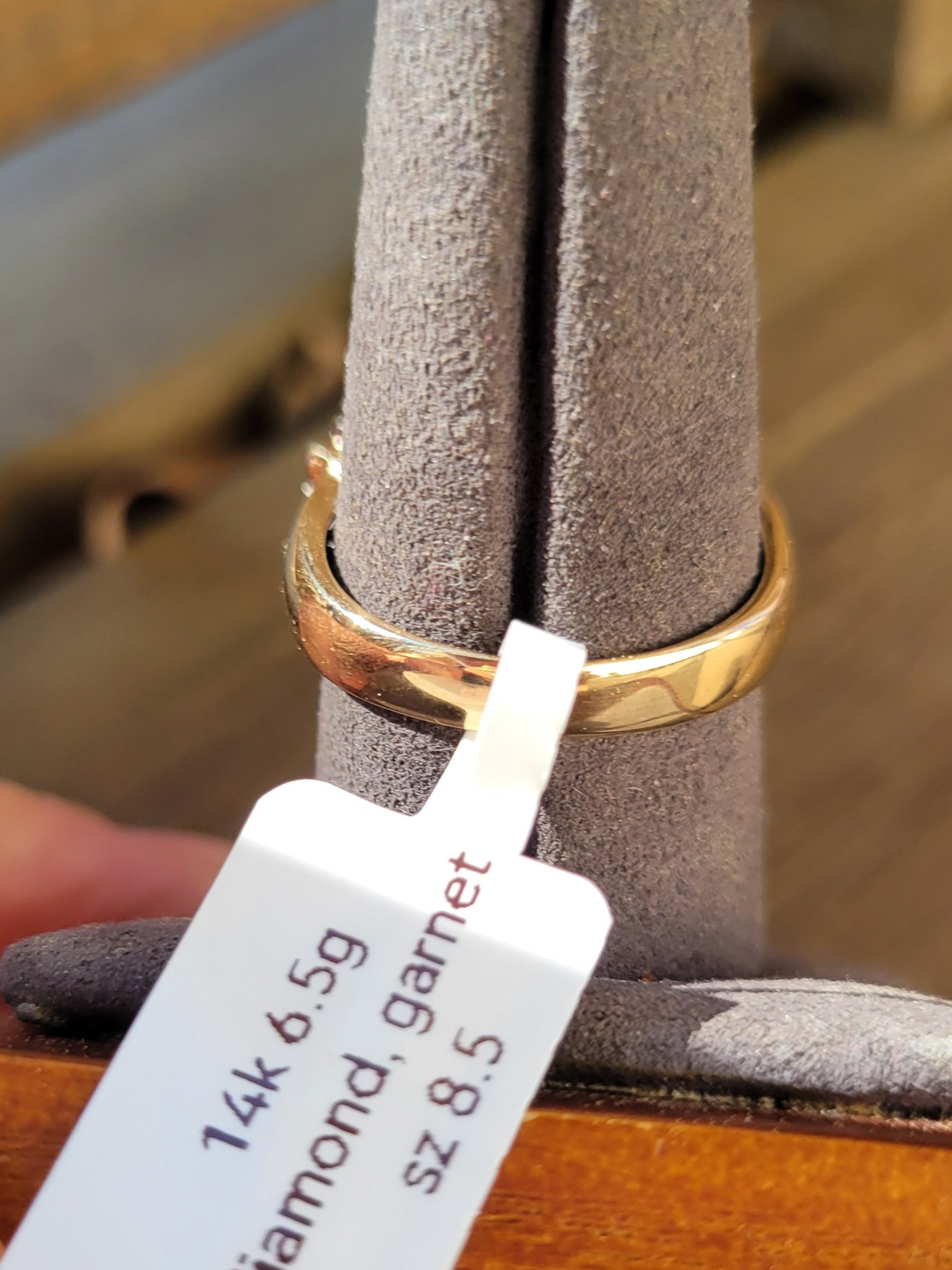 14k 6.5g diamond and garnet pyramid ring- sz8.5 quantity