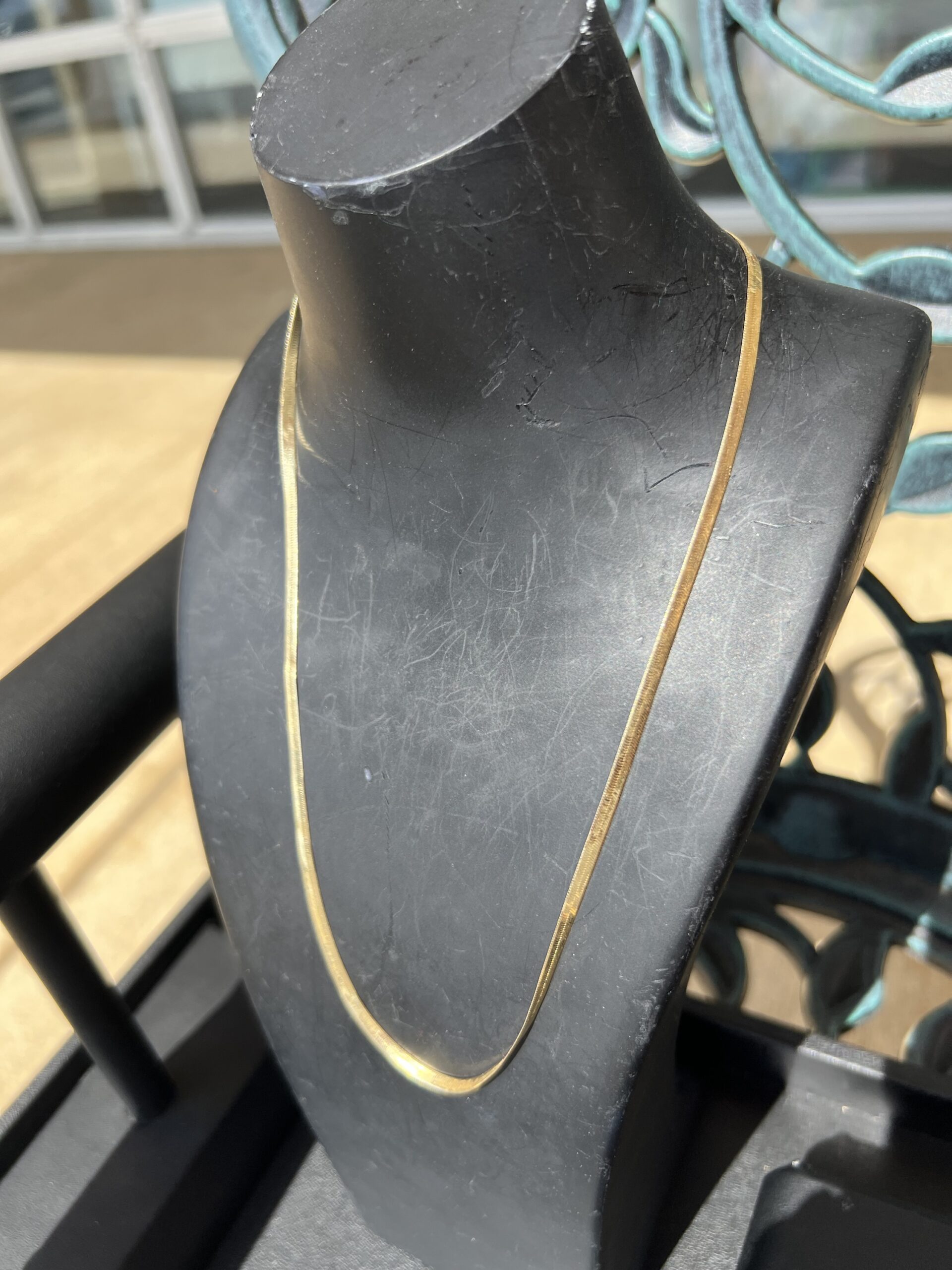 Smooth gold herringbone necklace with sleek shine. 3mm