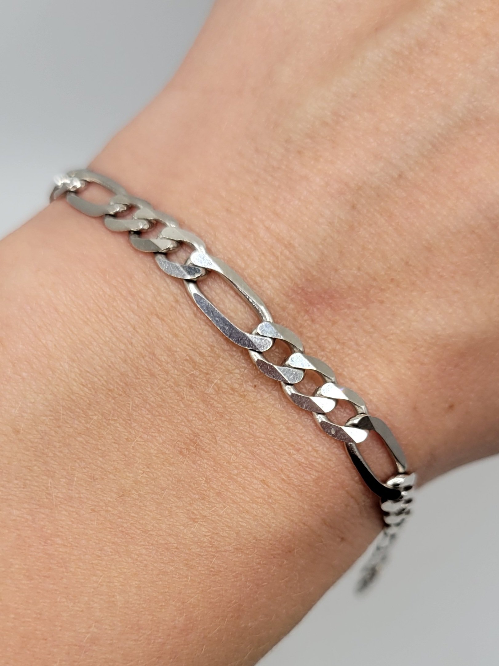14k 7.3g white gold figuro bracelet- 7″