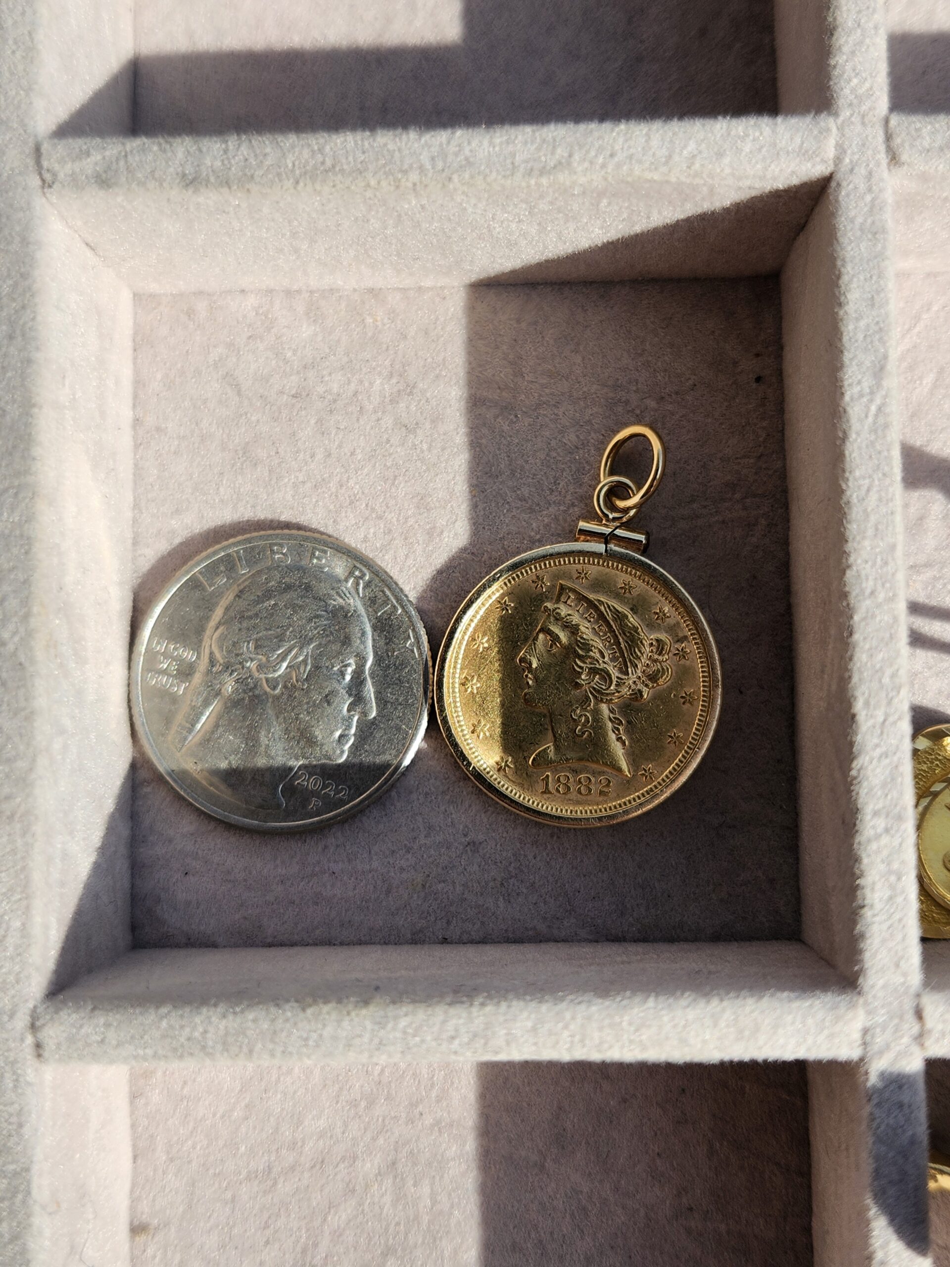 14k & 90% 10.1g Liberty $5 Gold Coin Charm quantity