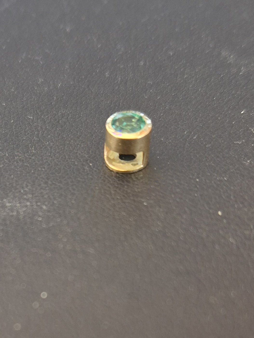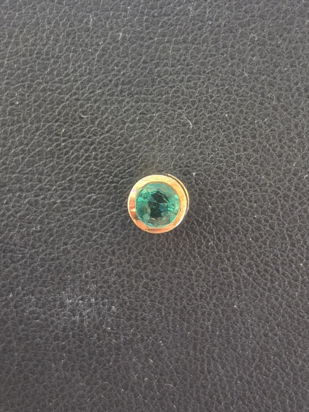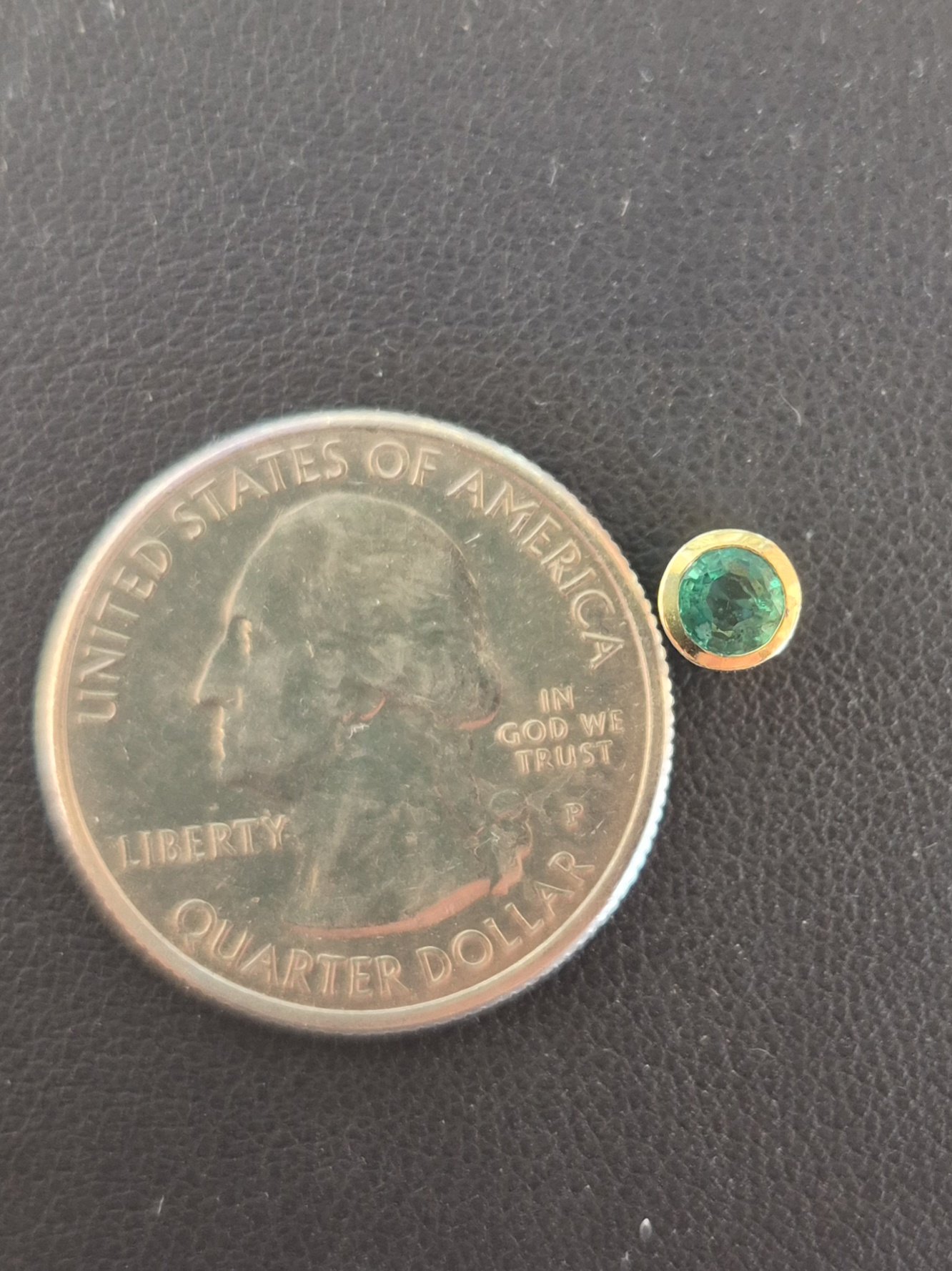 0.25 carat emerald set in 18k yellow gold. can fit uo to a 3mm chain. Two available!