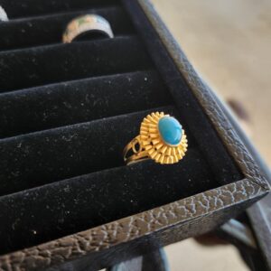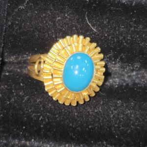 Skip to contentThis ring looks 22k but is 18k. I really love the contrasting blue with the deep orange color of the gold.