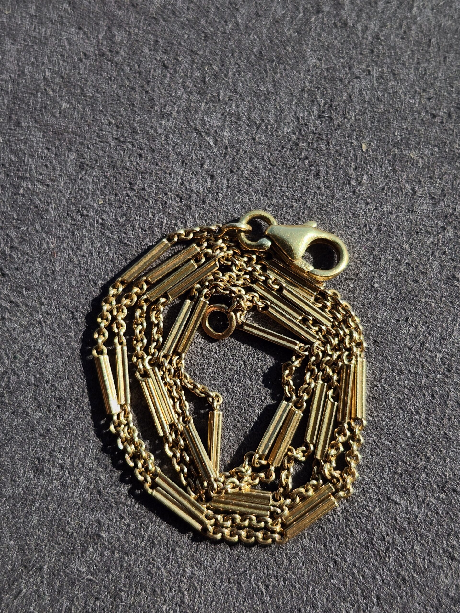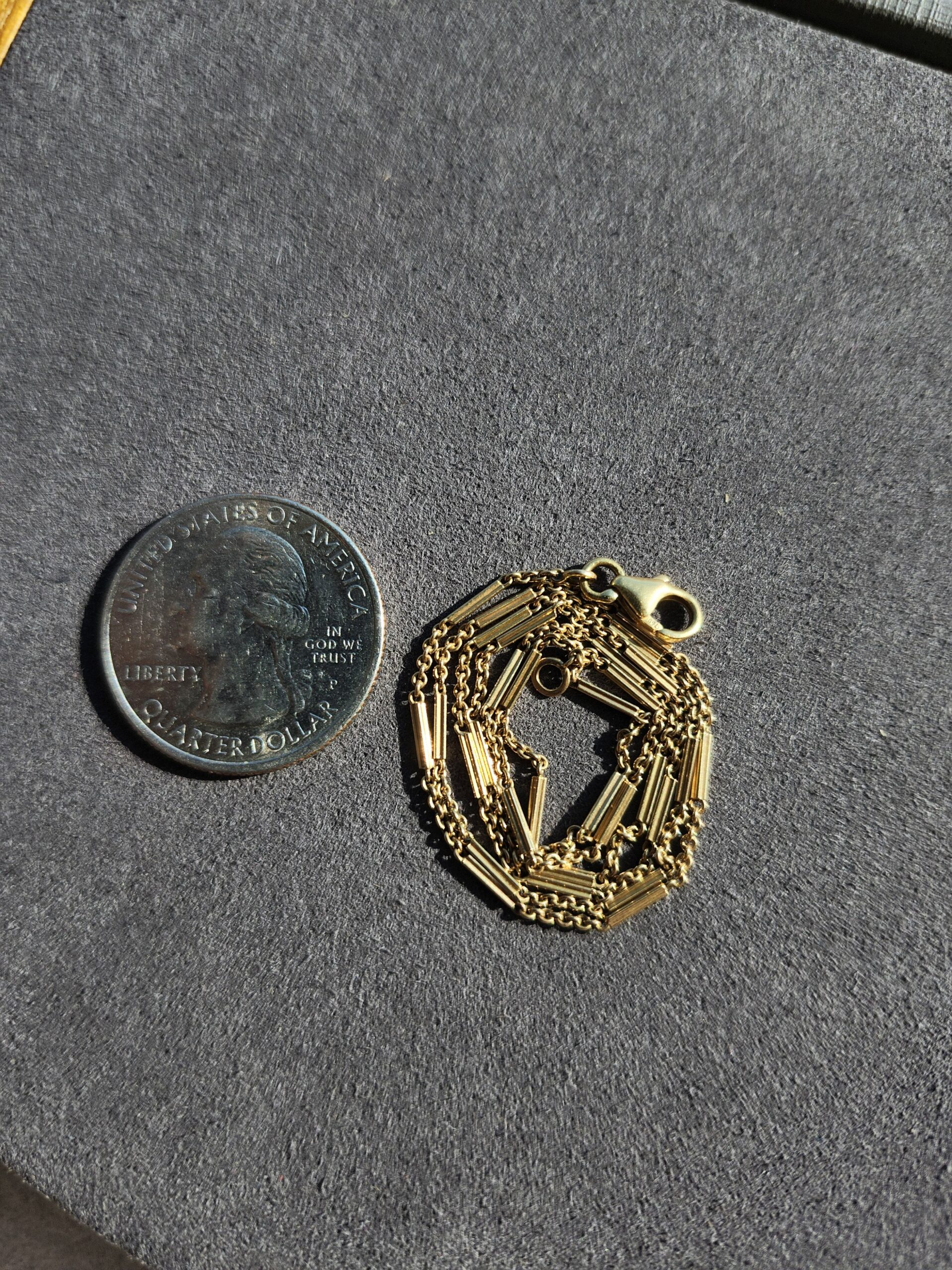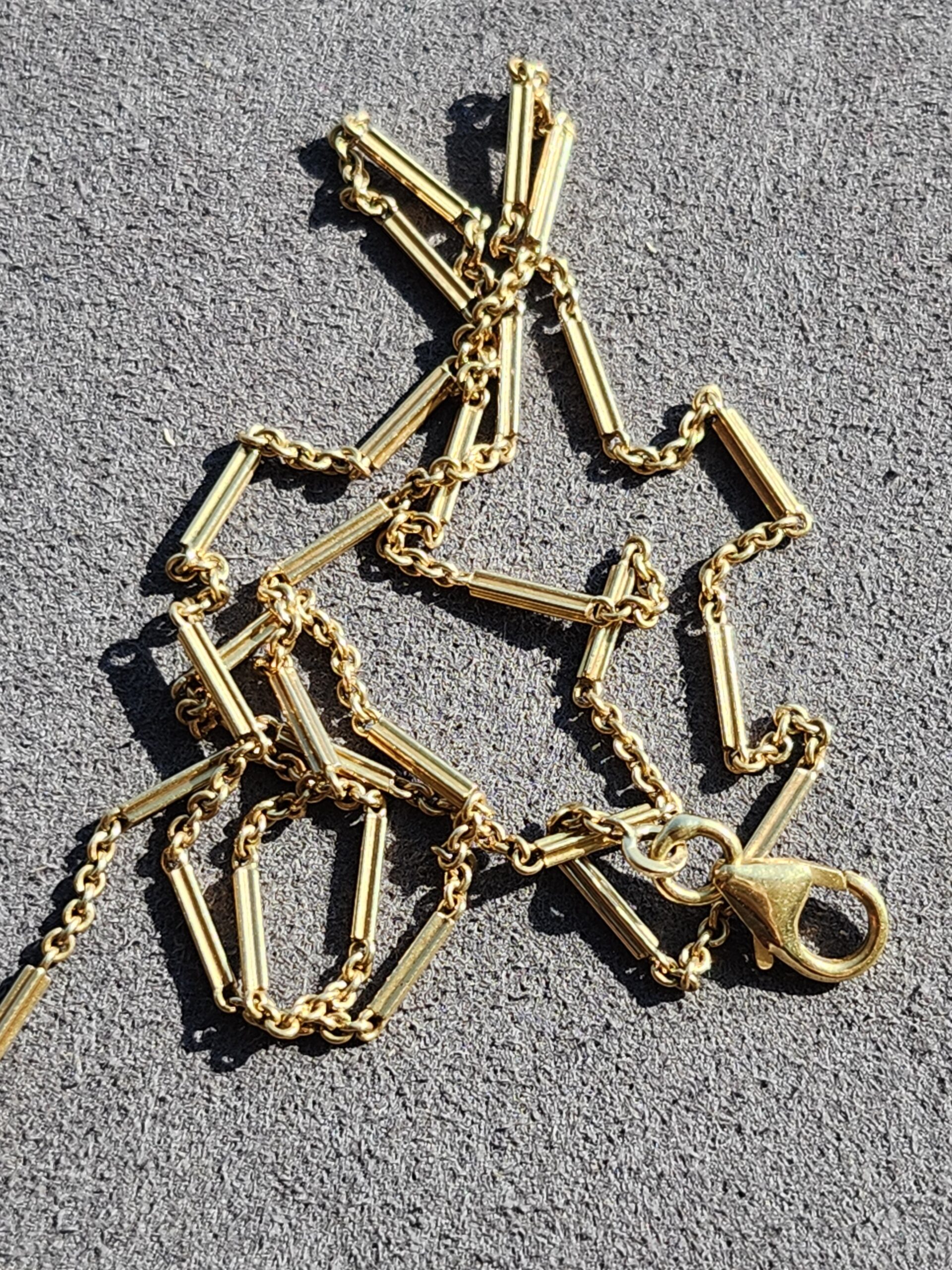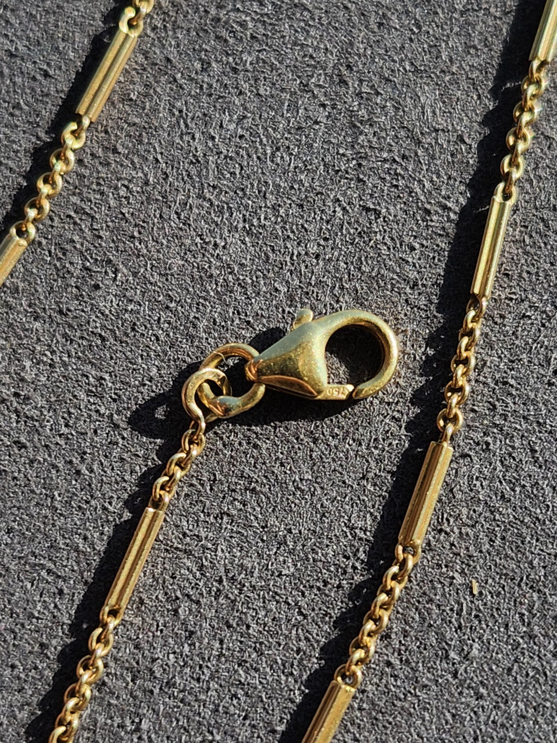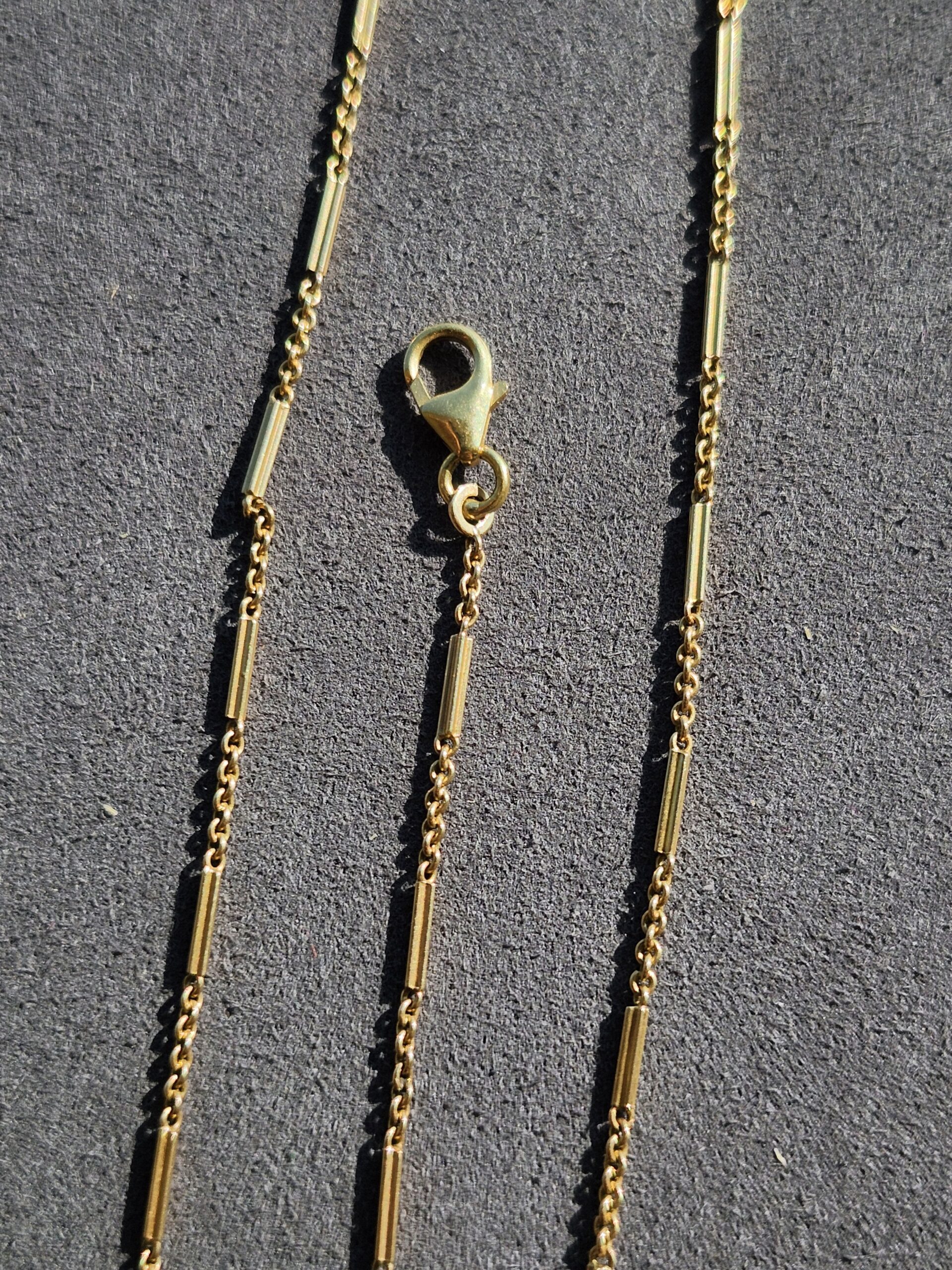 unique little chain, 1.25mm. sturdy lobster clasp and high purity 18k too!