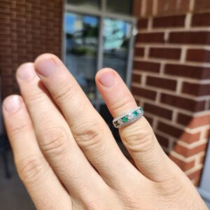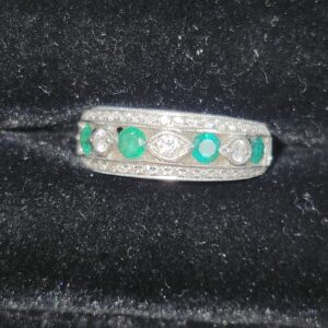 18k 5.5g Diamond and Emerald Small White Ring Sz 4.75