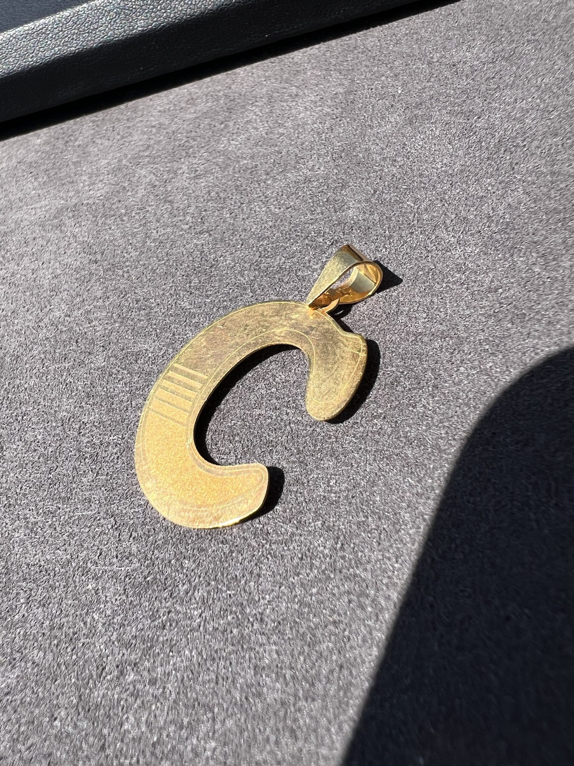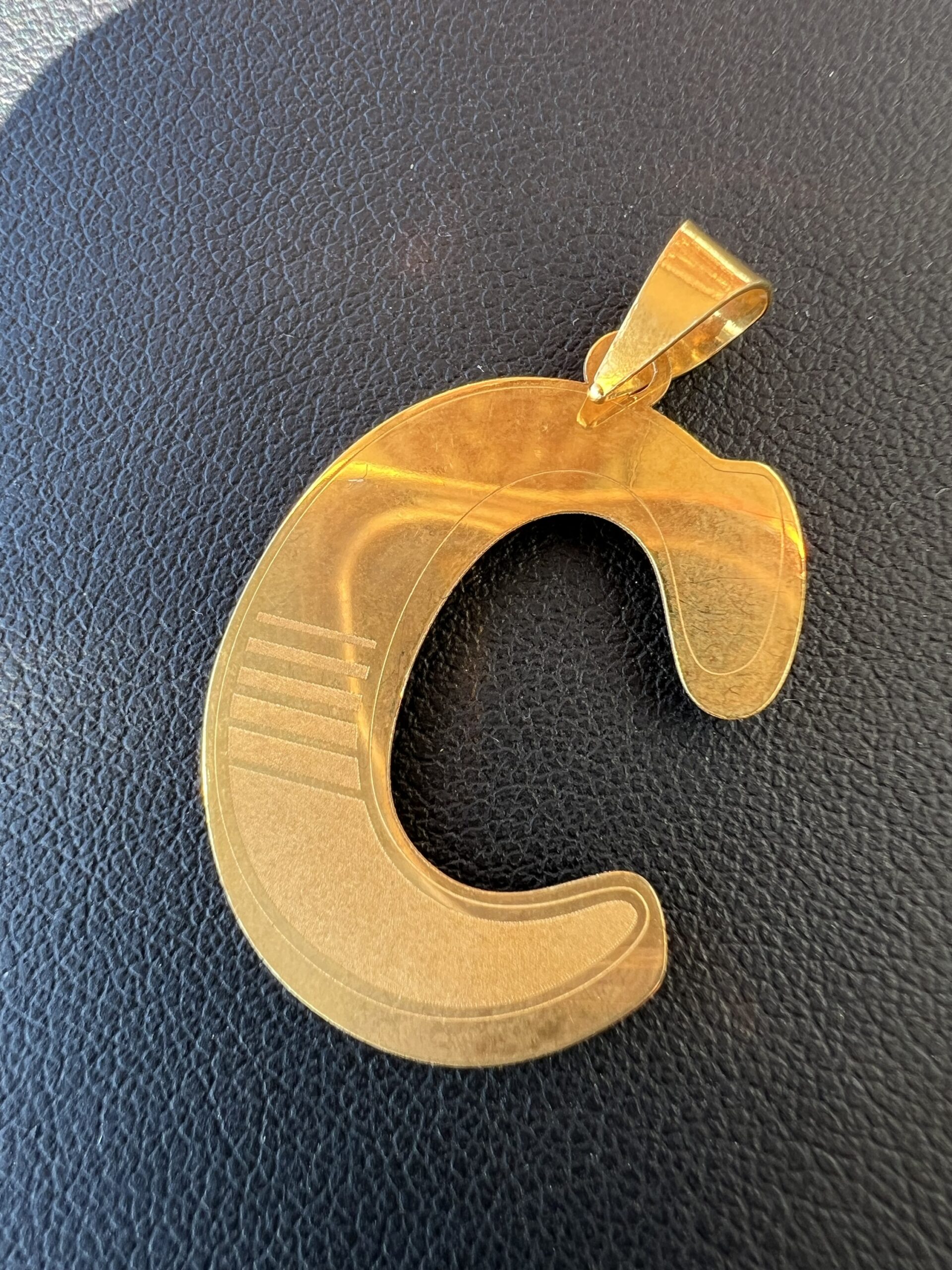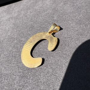 This eye catching “C” charm has a wide bail and a highlighted texture that stands out uniquely. 4.4mm by 6.4mm bail.