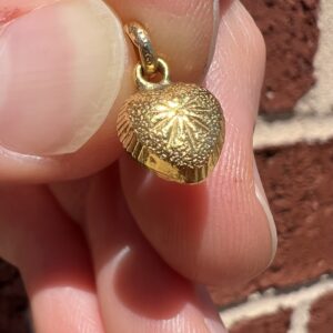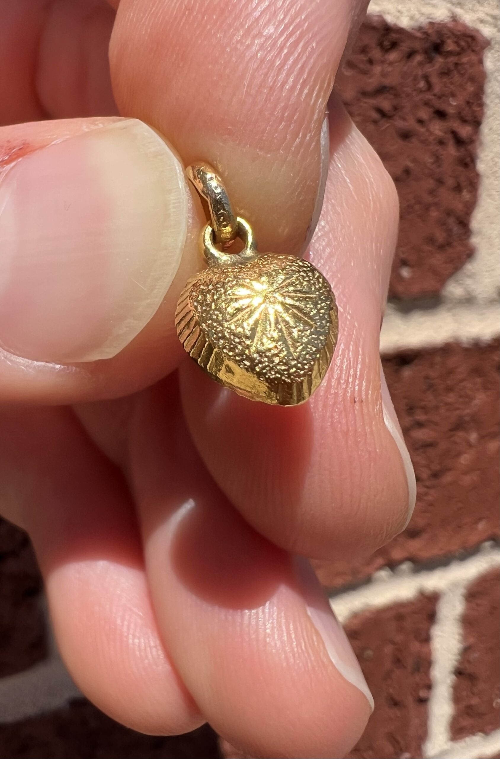 Skip to contentCheck this out. A unique heart charm here for your chain. Beautiful and thick heart of 22k, close to pure gold. Bail is 3.1mm.