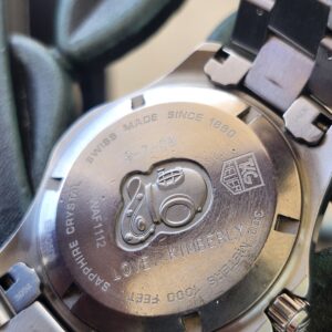 It has a small “Love Kimberly” etched into the case back. It could always be buffed out if it bothers you.