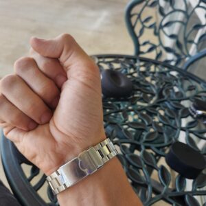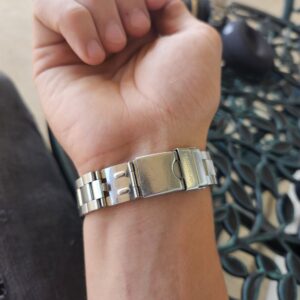 I wear a 7.75” wrist and it fits me a little loose. The bracelet can also be micro adjusted at the lock to make it bigger or smaller. Also, there is an optional bracelet extension for this model that makes it about another ½ inch larger on the bracelet. Of course links can be easily removed for a smaller size. Anything up to 8.5 inches large should fit this watch nicely. See last picture for the bracelet extension.