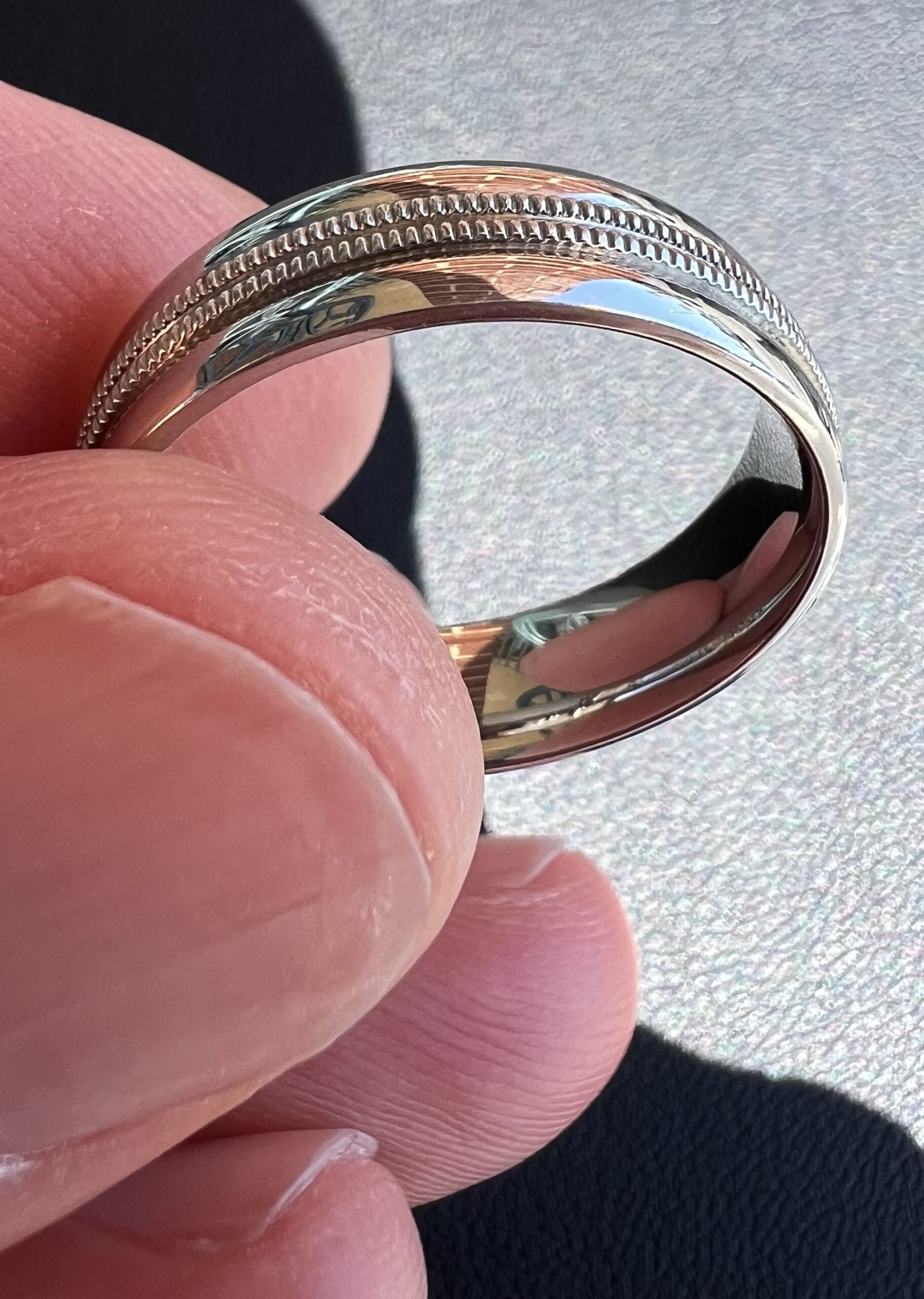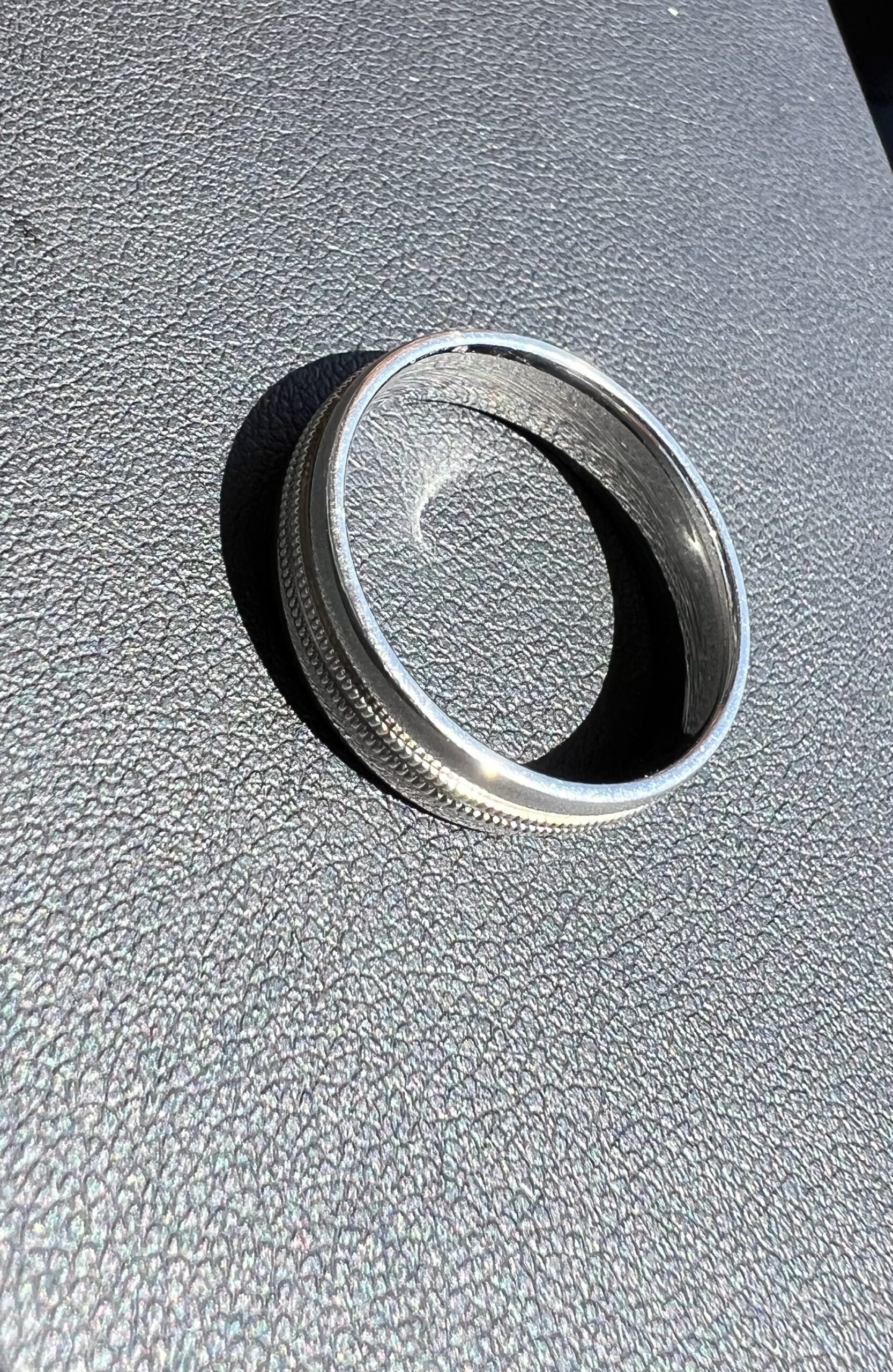 Skip to contentUnique Platinum Ring with double differentiating design down the middle.