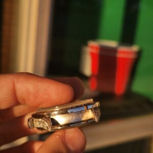 The diamonds on the dial look particularly nice and clean. The band has very little wear and sparkles like crazy, while the crystal could handle a re-polish.